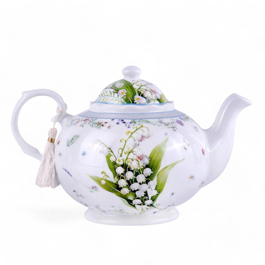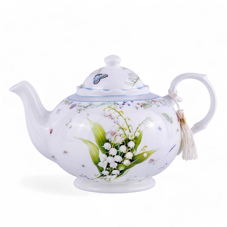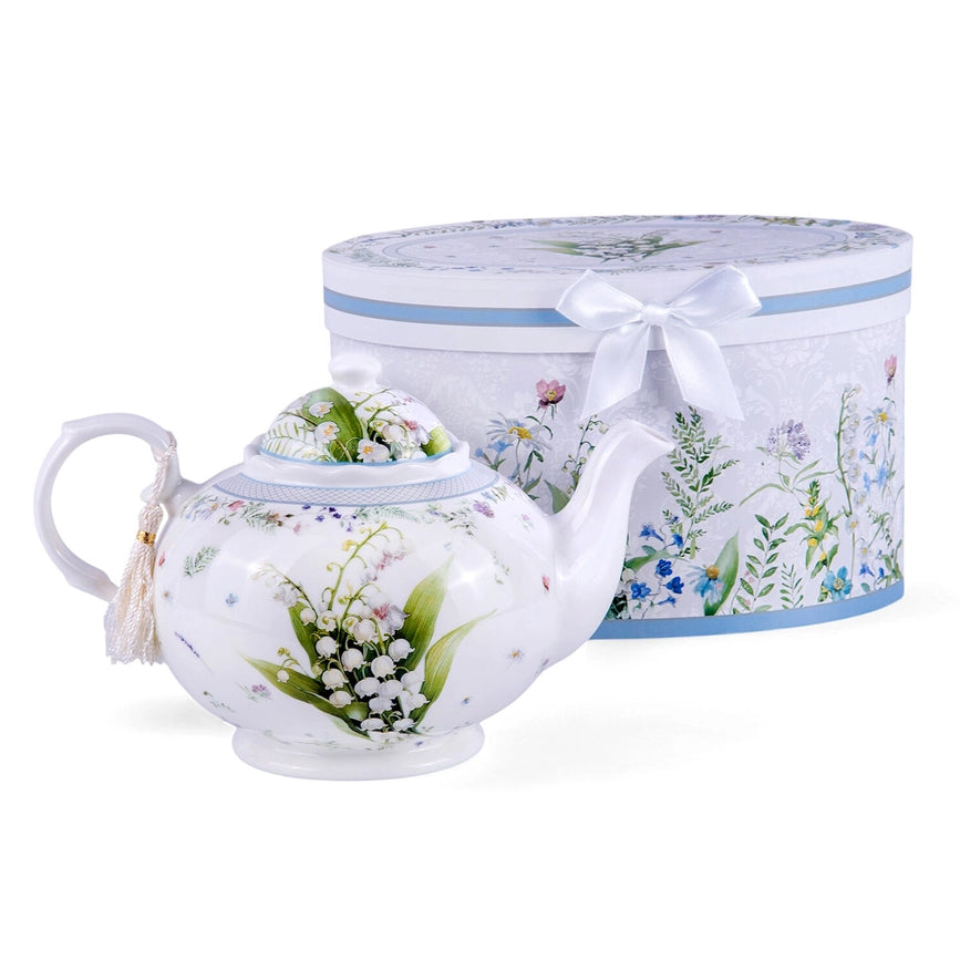 This Lily of the Valley Bone China Teapot comes in a beautiful gift box, perfect for special occasions or as a thoughtful present. Made of high quality new bone china, it boasts a generous capacity of 1.14-qt. and is dishwasher and microwave safe for easy cleaning and convenience. Elevate your tea time experience with this elegant teapot.