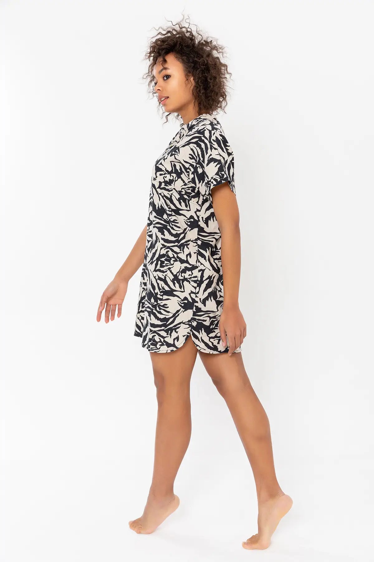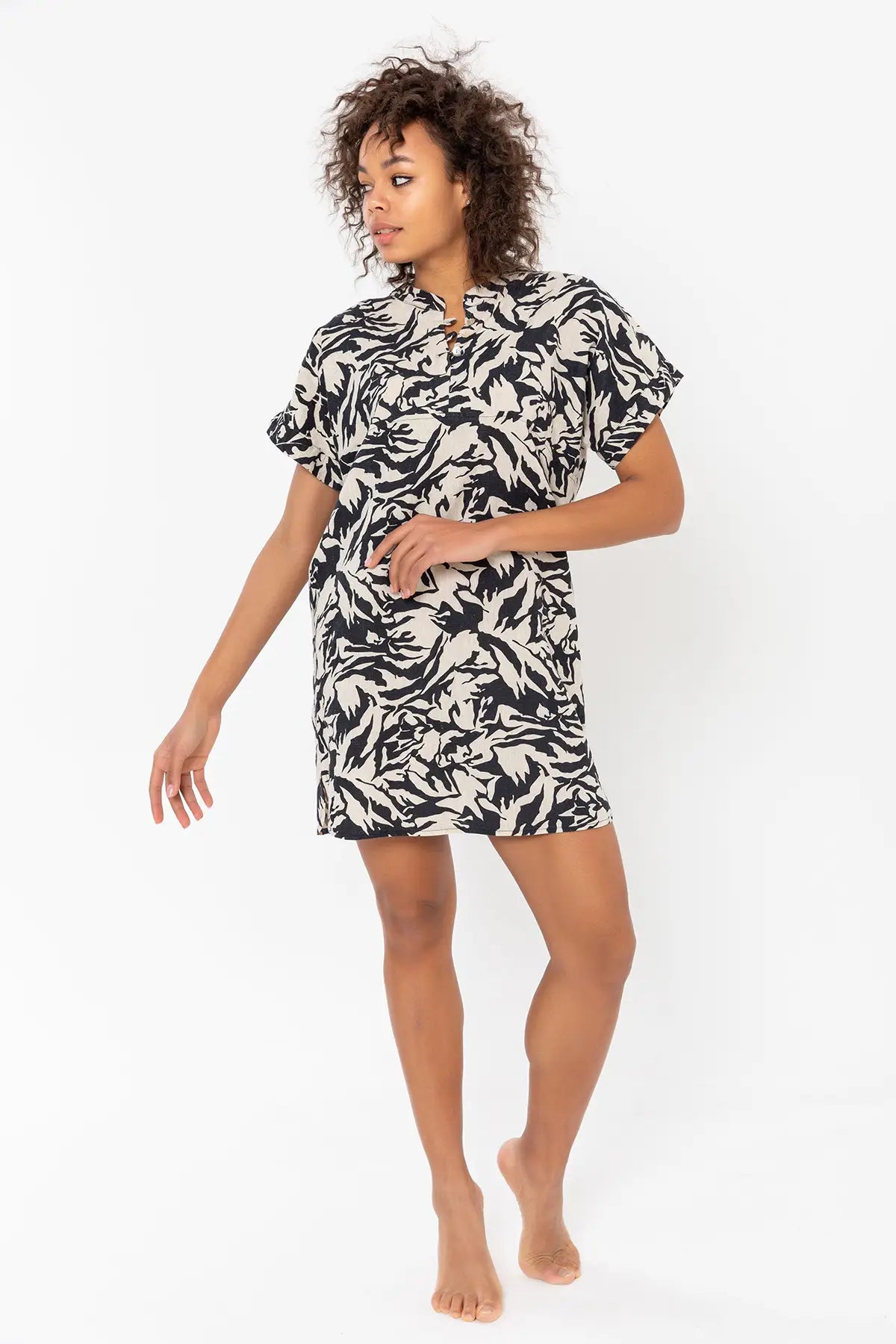 The Linen Nature Zebra Dress is designed to flatter any body type, with its relaxed fit and flattering silhouette that hugs your curves in all the right places. The dress is breathable and lightweight, making it ideal for warmer weather. The mini length and short sleeves add a playful touch to the overall design, making it perfect for dressing up or down.