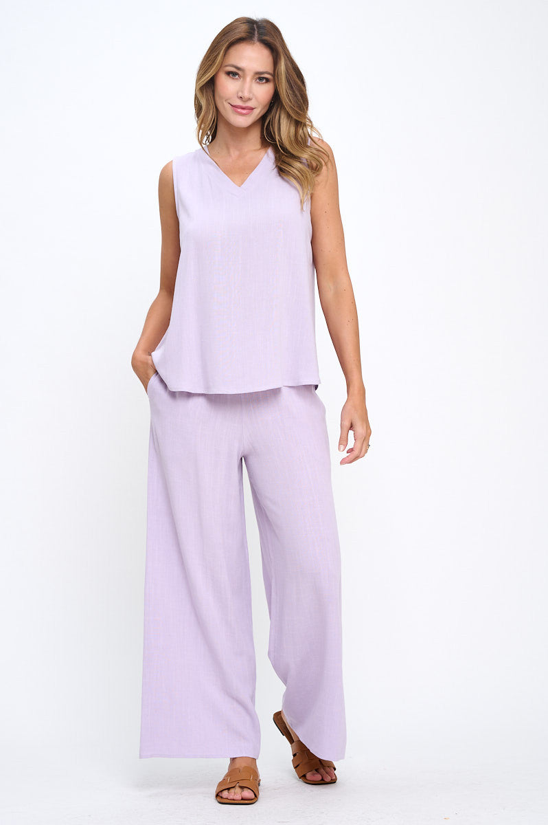 Linen Solid V neck Sleeveless Top-New Arrival-Reneecollection-Small-LAVENDER-Urbanheer