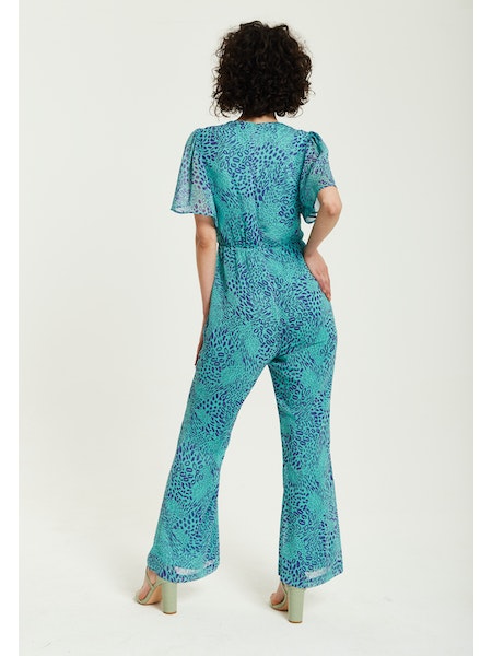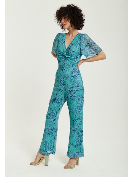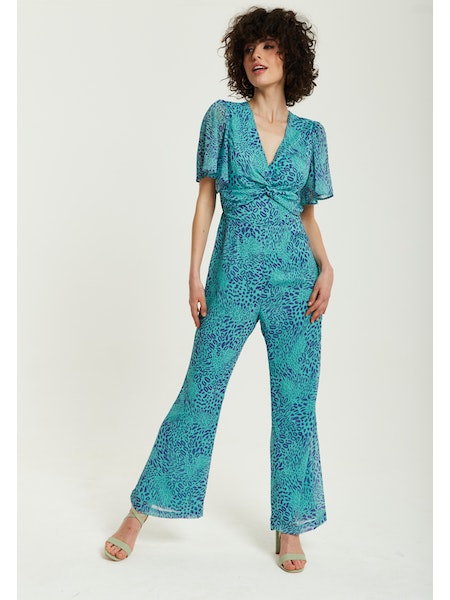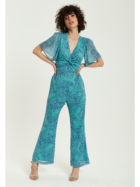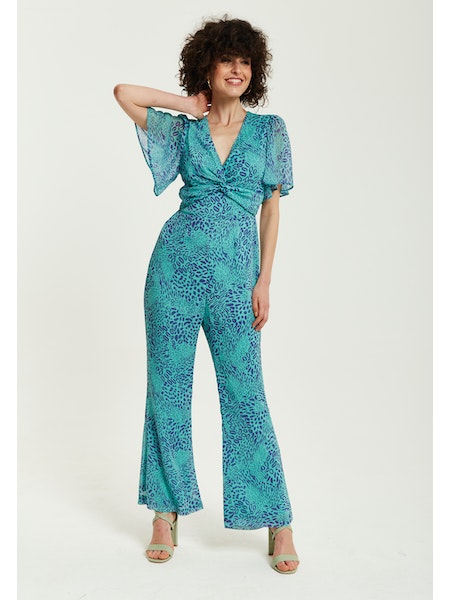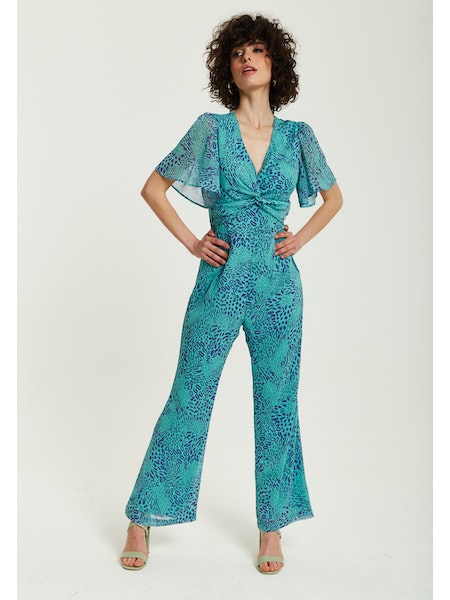 Liquorish Blue Animal Print Knot Front Jumpsuit