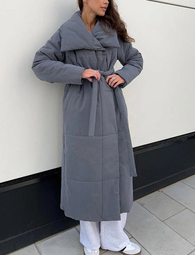 Loose Fitting Long Stand Up Collar Coat Darkgray