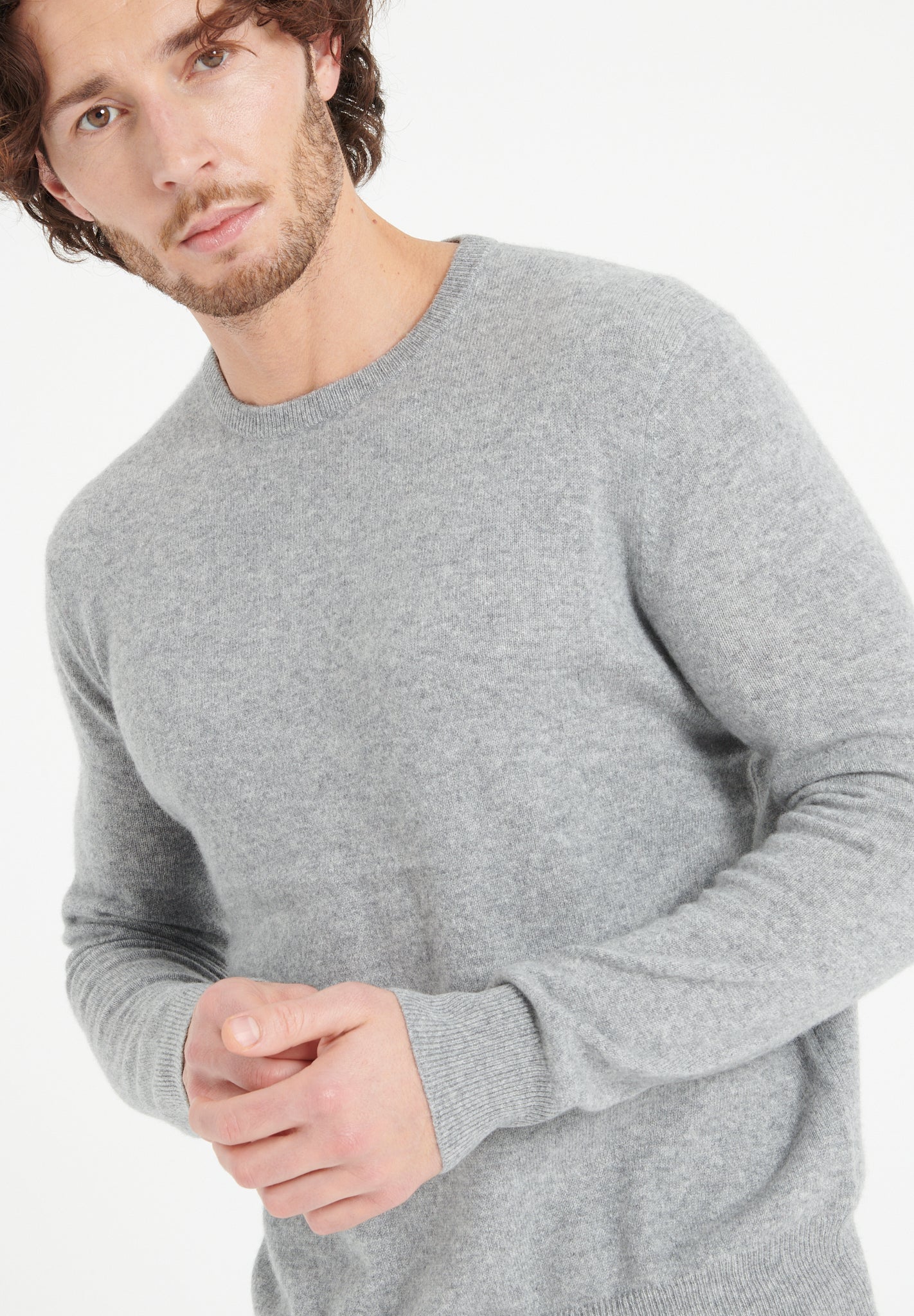 LUKE 2 Pull col rond en cachemire gris clair
