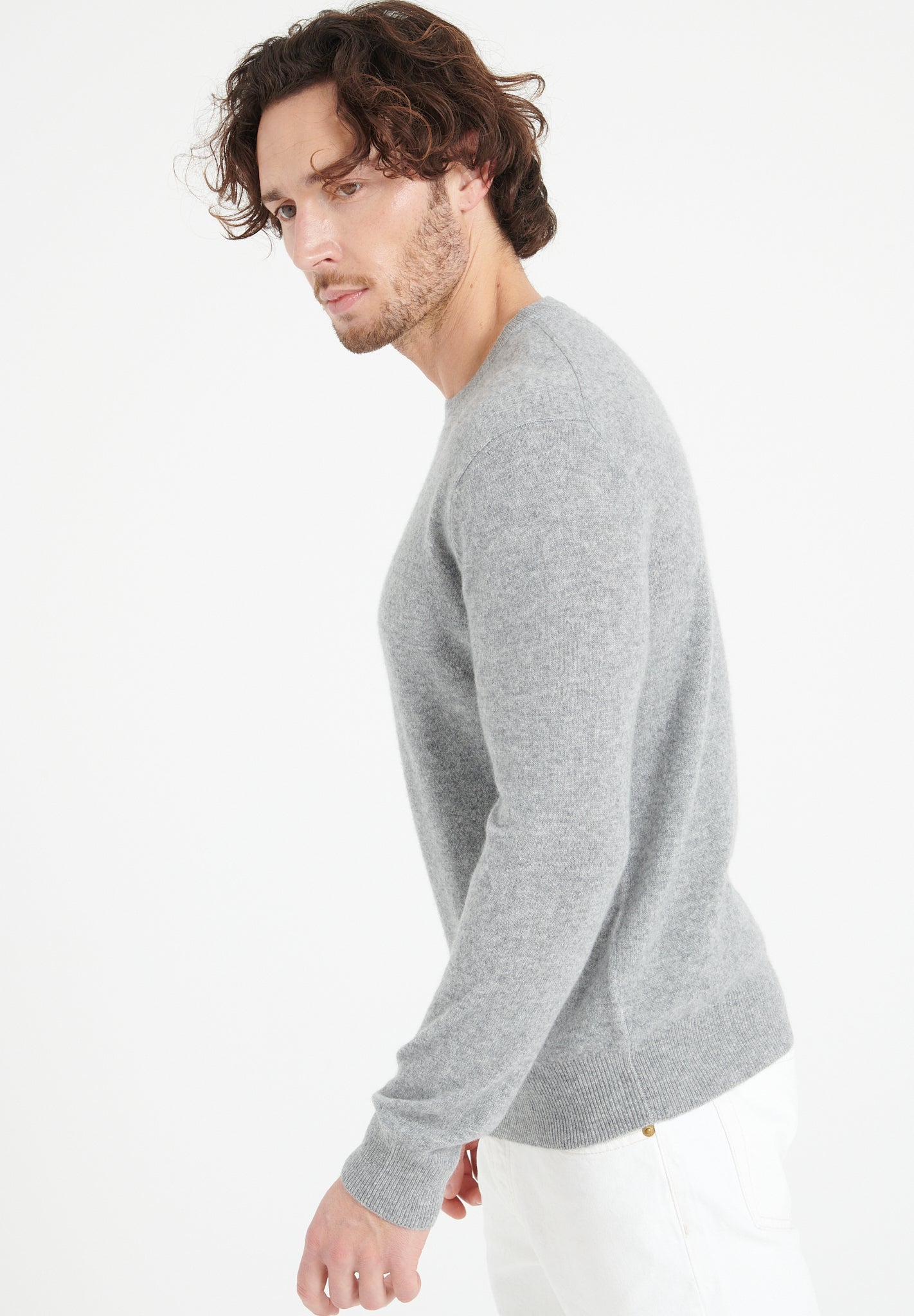 LUKE 2 Pull col rond en cachemire gris clair-col rond homme-Studio Cashmere8-S-SC8-00052-gris clair-Urbanheer