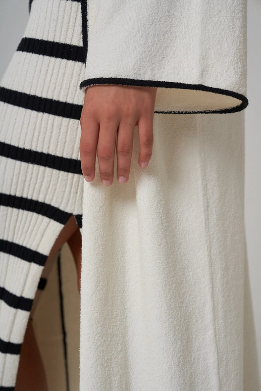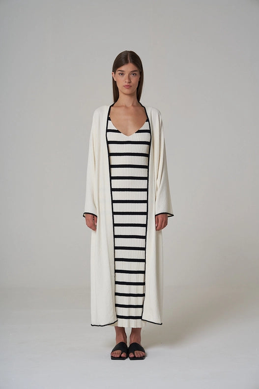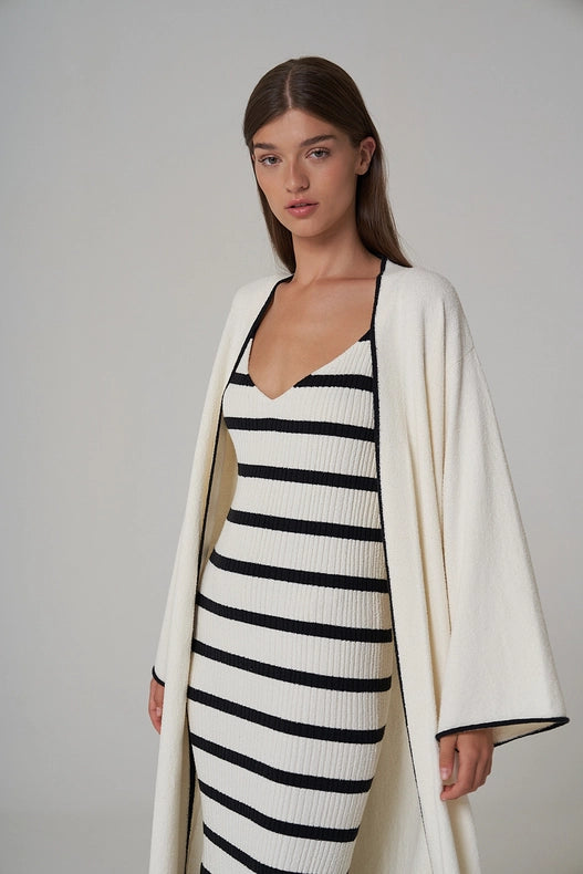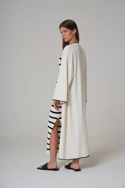 The Maha Knitted Maxi-Coat features an oversized and relaxed fit, perfect for creating a stylish and effortless look. Made with a blend of cotton and nylon, it offers comfort and durability. Easily paired with the matching dress, it is the ideal choice for a chic and fashionable Spring/Summer season. Hand wash for easy care.