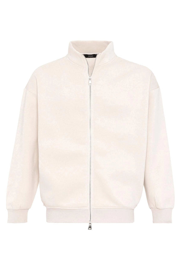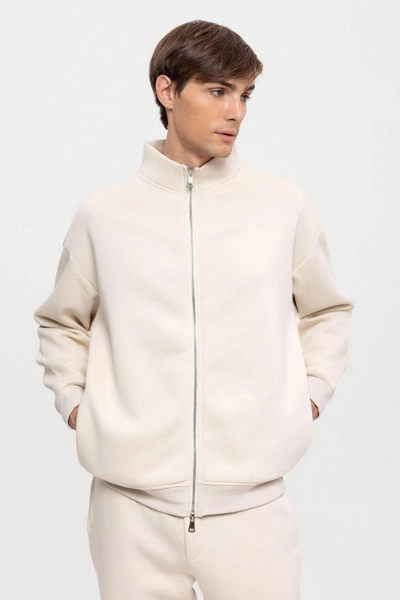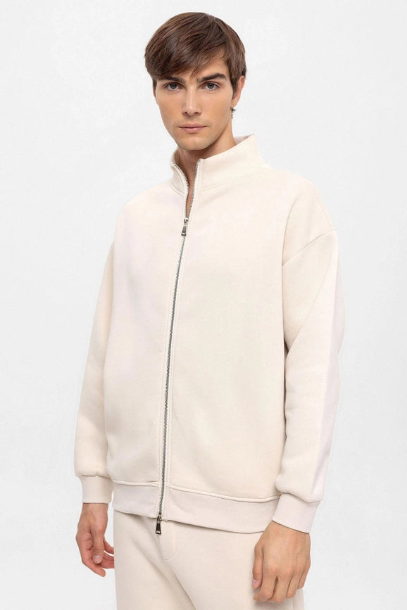 Men's Beige High Collar Double Zipper Closure Sweatshirt
