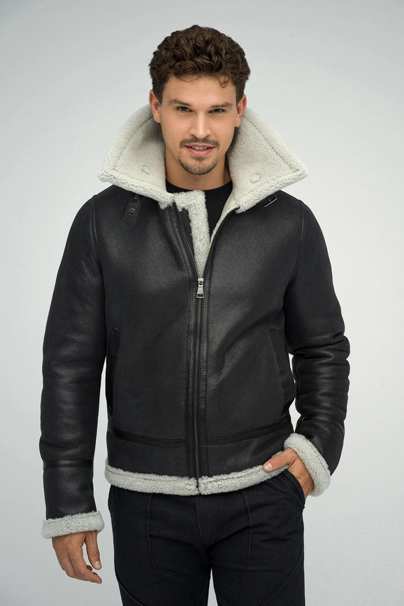 Merino Shearling Jacket For Men grey-Jacket-A&A Vesa-46-grey-Urbanheer