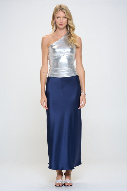 Metallic One Shoulder Ruched Top-New Arrival-Reneecollection-Small-SILVER-Urbanheer
