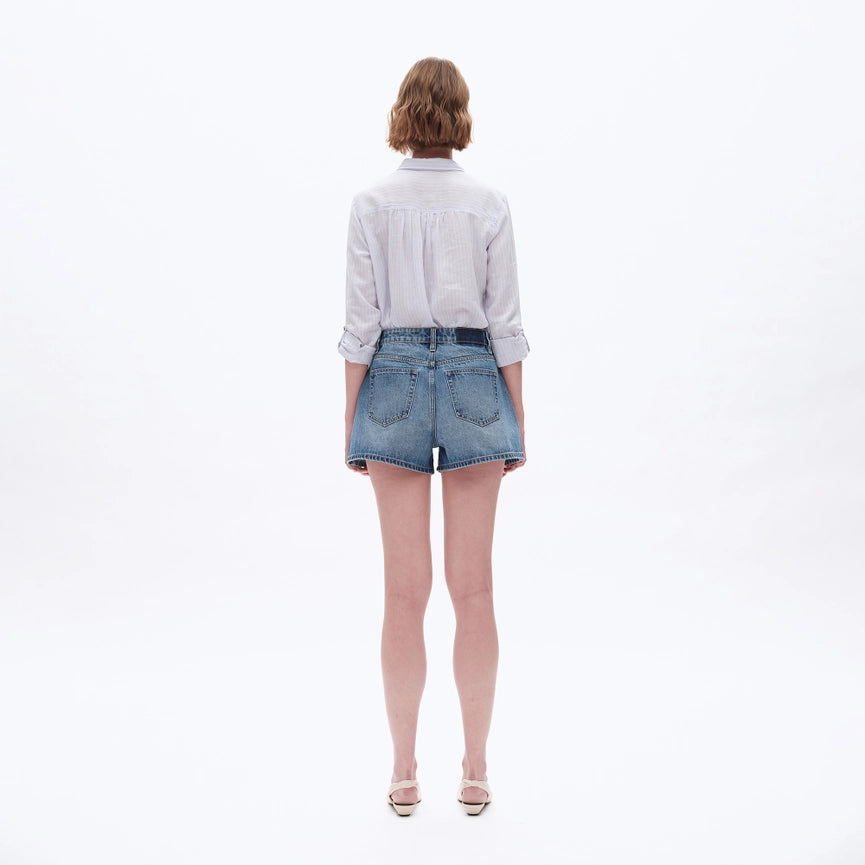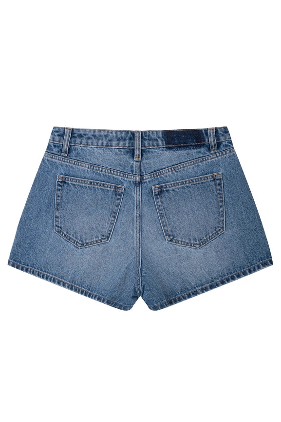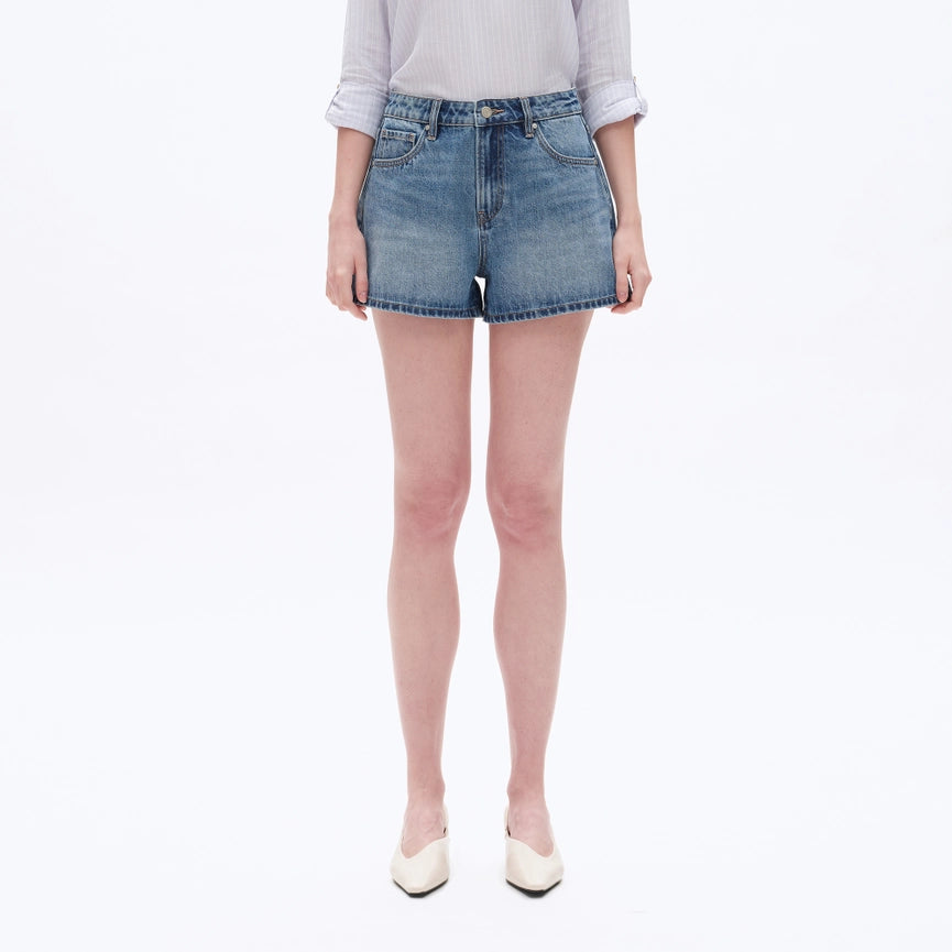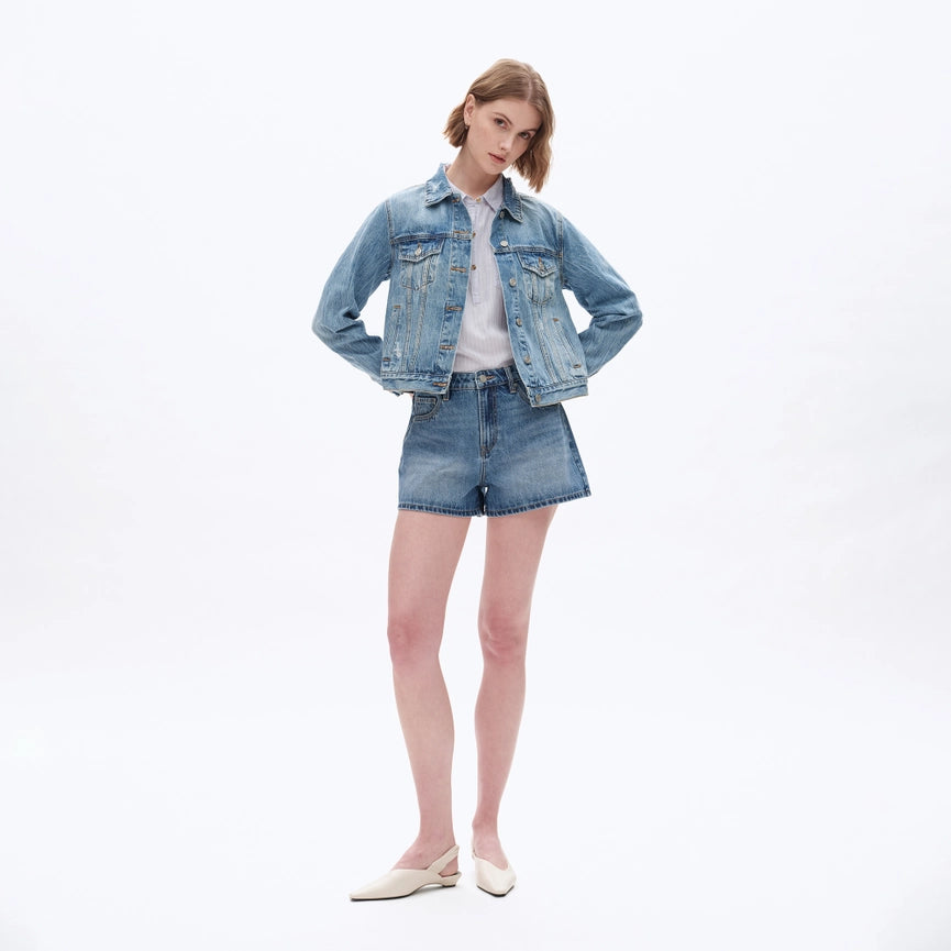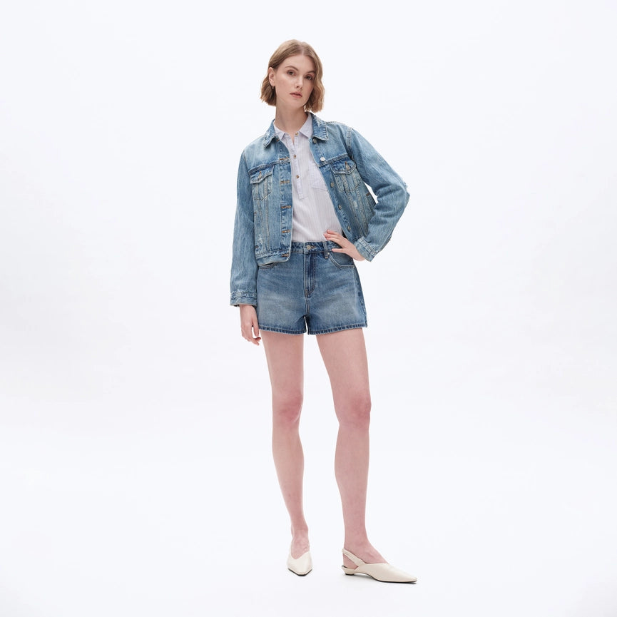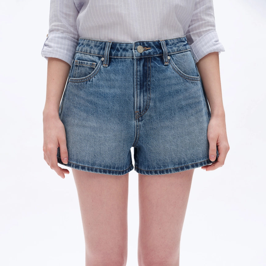Mid Rise Denim Shorts with Finished Hem