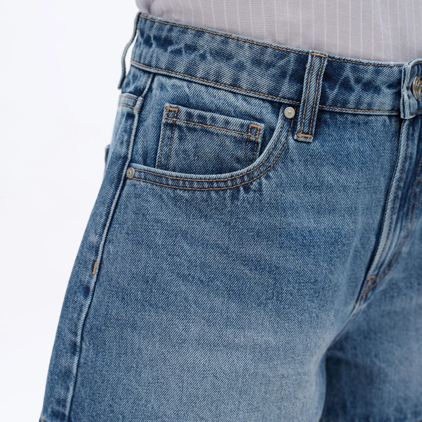 These Mid Rise Denim Shorts with Finished Hem are expertly crafted from rigid denim, providing a natural washing and whisker effect. With five pockets, a mid rise waist, and a zipper fly, these shorts offer both style and functionality. Made of 100% cotton, they are perfect for the warmer seasons and can easily be cared for with a simple machine wash.