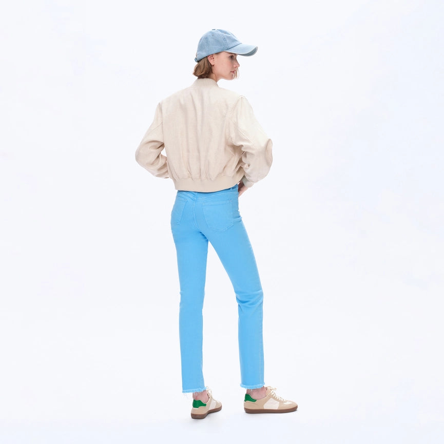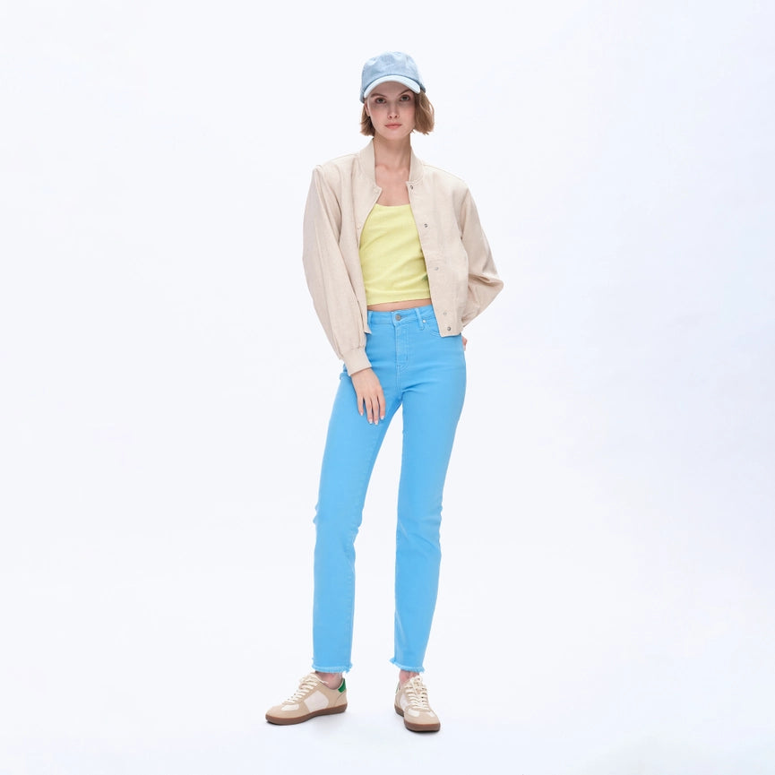 Mid Rise Straight Twill Pants with Raw Hem