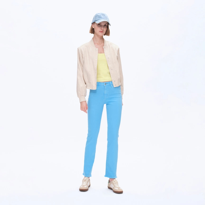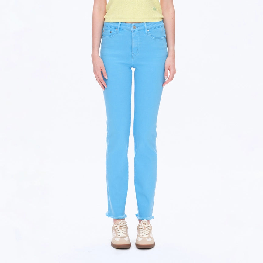 Expertly crafted from super stretch twill fabric, these mid rise pants in a beautiful sea blue hue offer both style and comfort. With five pockets, a zipper fly, and a raw hem, these garment dyed pants are perfect for Spring/Summer. Plus, they're easy to care for with a simple machine wash.