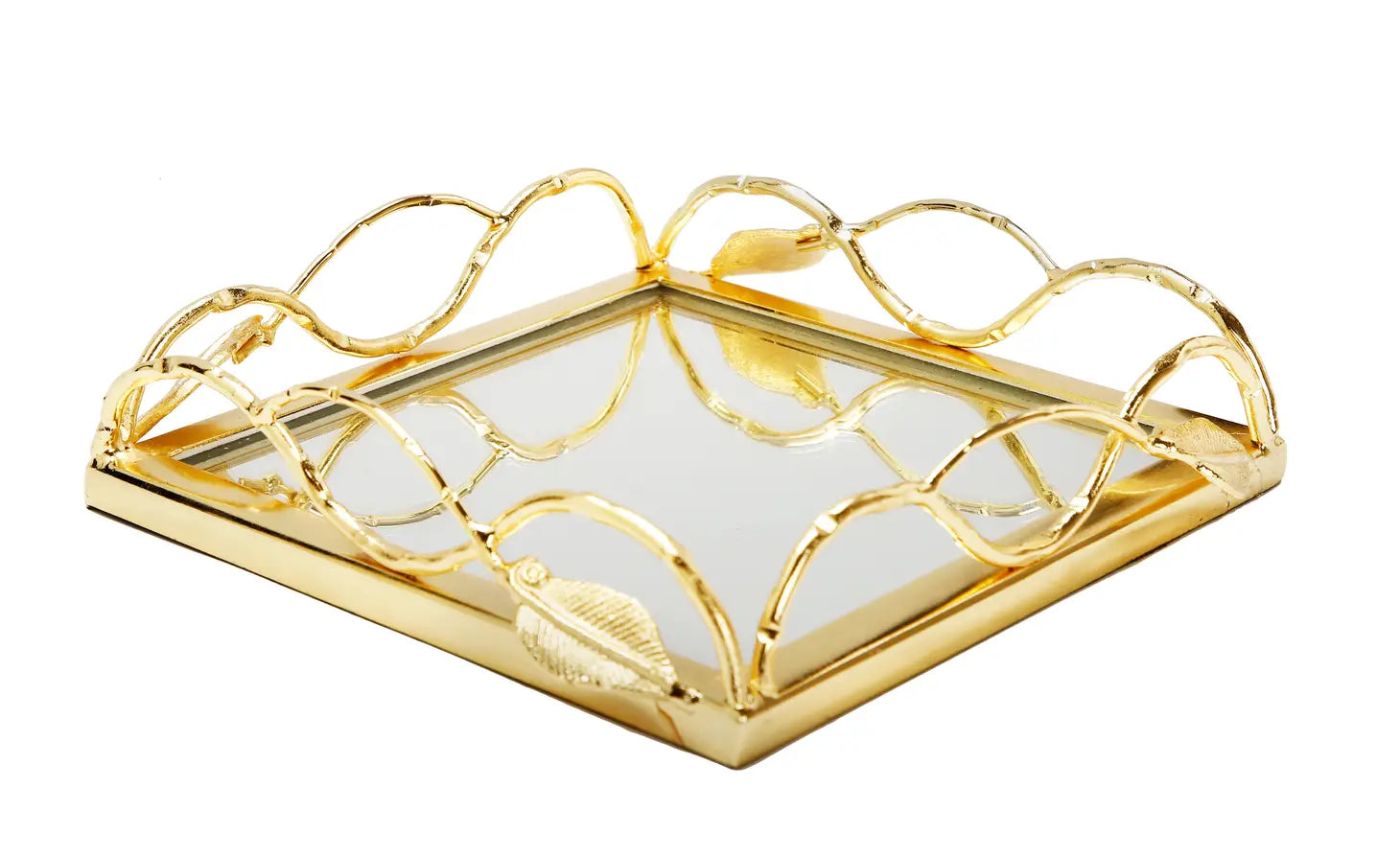 Make your napkins accessible on the table with this finely designed napkin holder. It features a mirror base which gives it a multi-faceted purpose on the dining table-a napkin holder and decorative tray. It is ideal for holding any standard sized napkin. Measures: 8"L x 8"W x 2"H