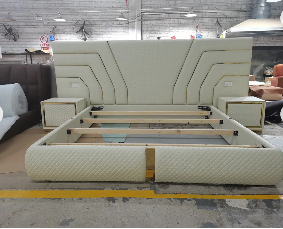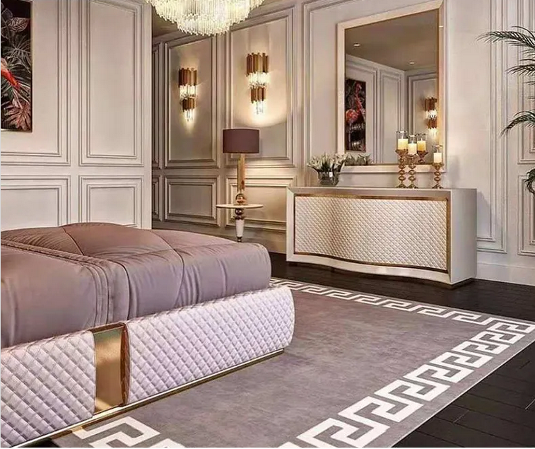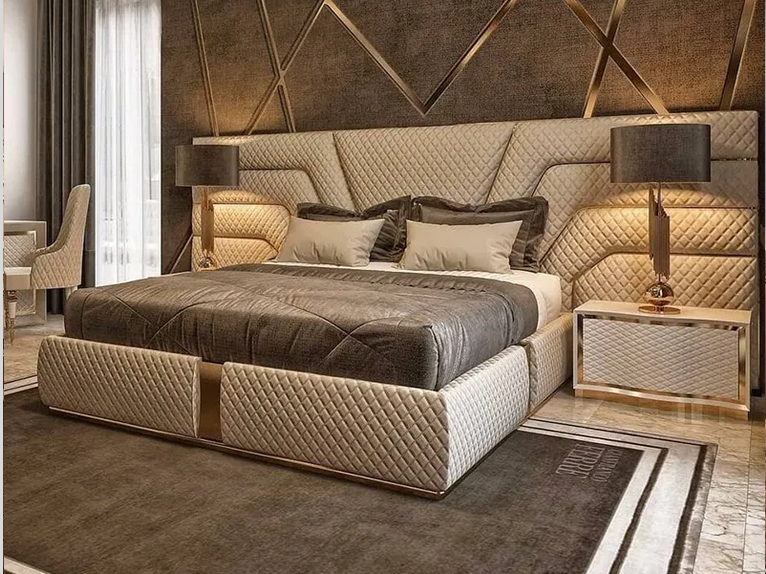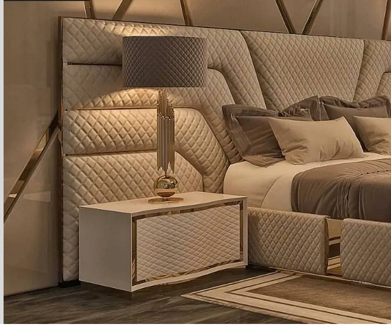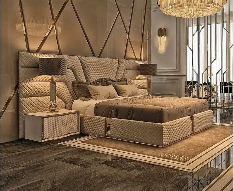 Modern Leather Upholstered Double King Size Italian Luxury Bed Villa