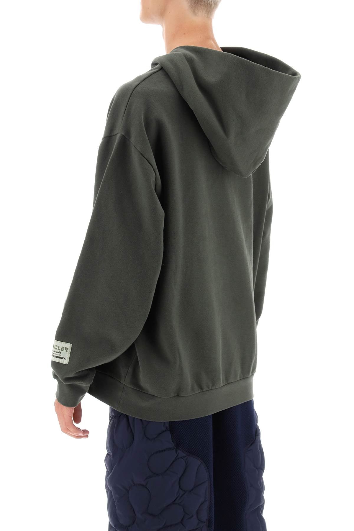 Unisex hooded sweatshirt from the Moncler x Salehe Bembury collection, part of the Moncler Genius project. Crafted from fleece-back cotton jersey to an oversized fit, it comes in a high-neck design with kangaroo pocket. A collection logo is printed across the chest, while a collaboration label appears on the left sleeve. Ribbed cuffs and hem. The model is 187 cm tall and wears a size L.