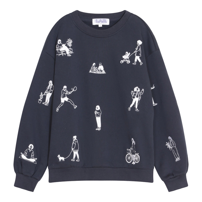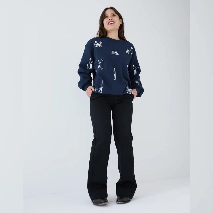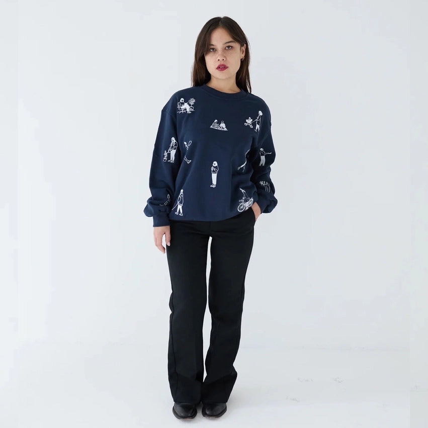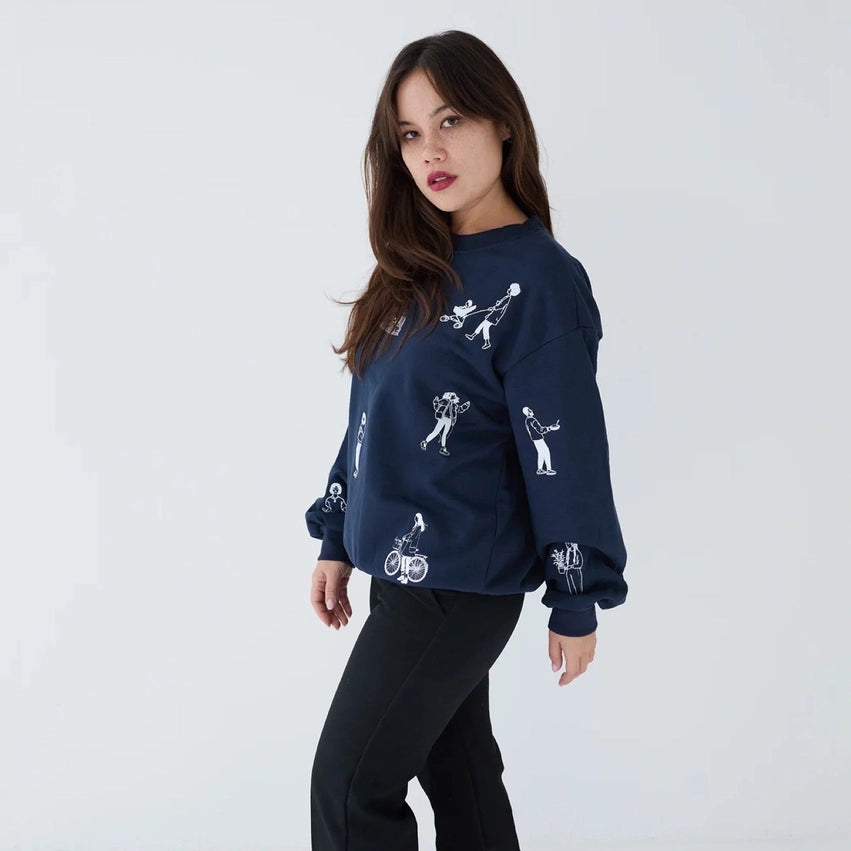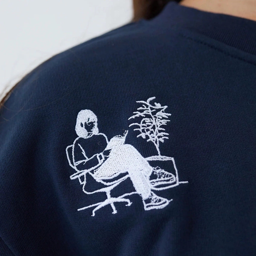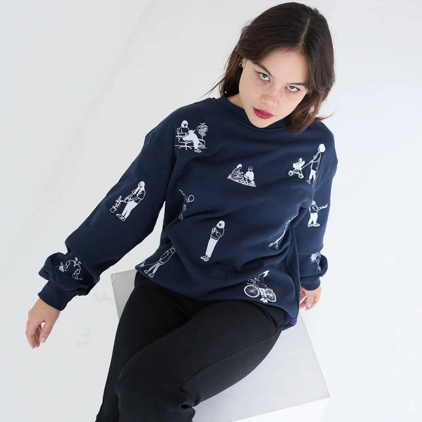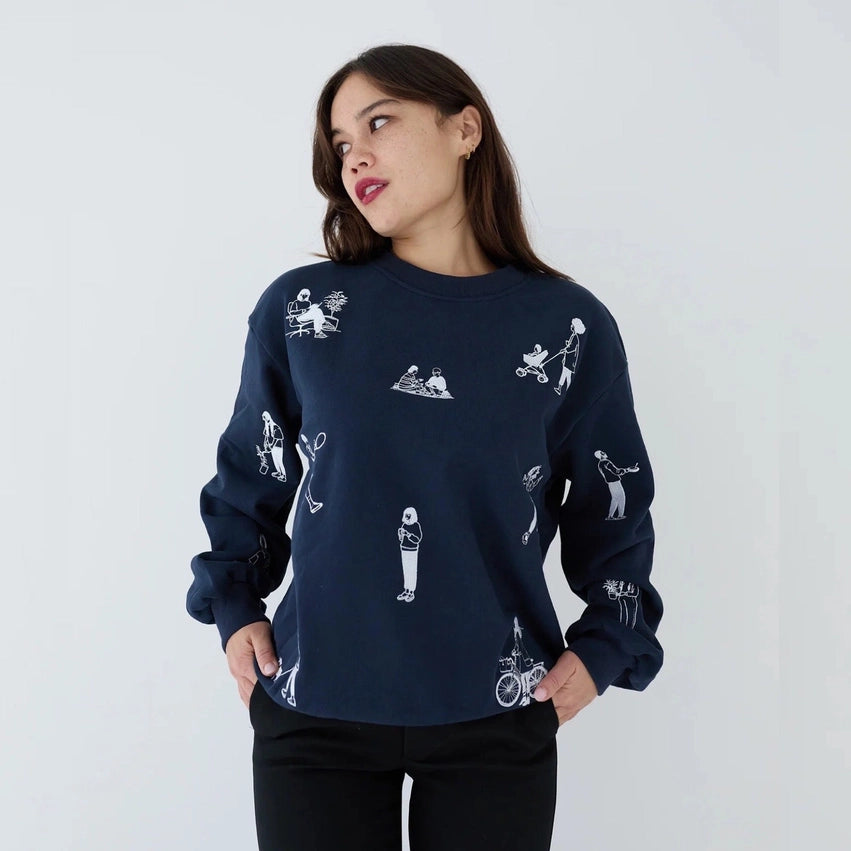 Experience luxury and sustainability with our Navy Premium Heavyweight Jumper. Made from 100% organic cotton and using the same quality fabric as luxury brands, this unisex jumper features 12 unique embroidered designs of people doing various activities. With an oversized fit and made in the UK, it's not just a blank jumper - it's a statement piece. Wash with similar colours at 30*C for optimal care.
