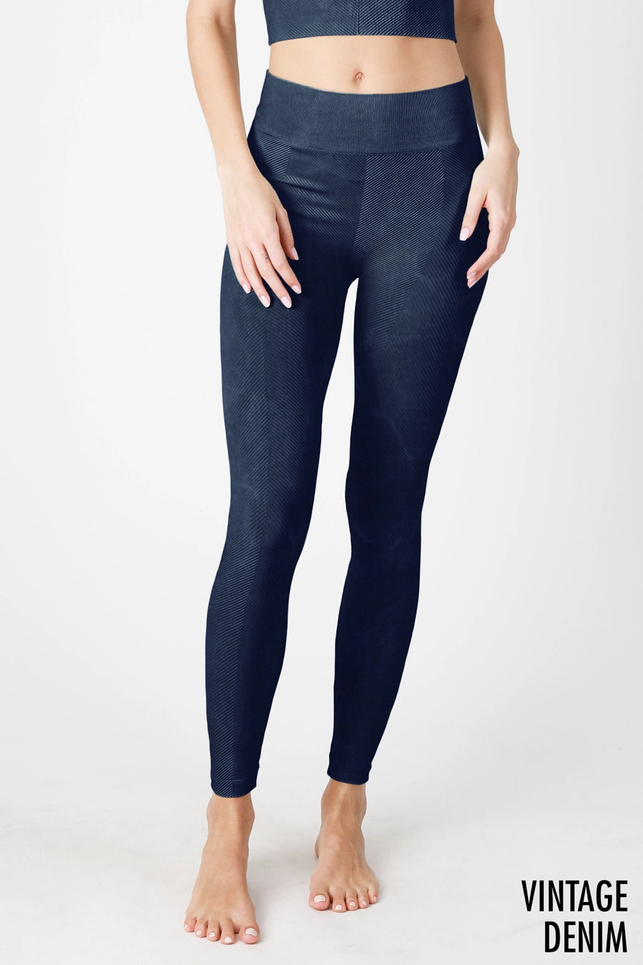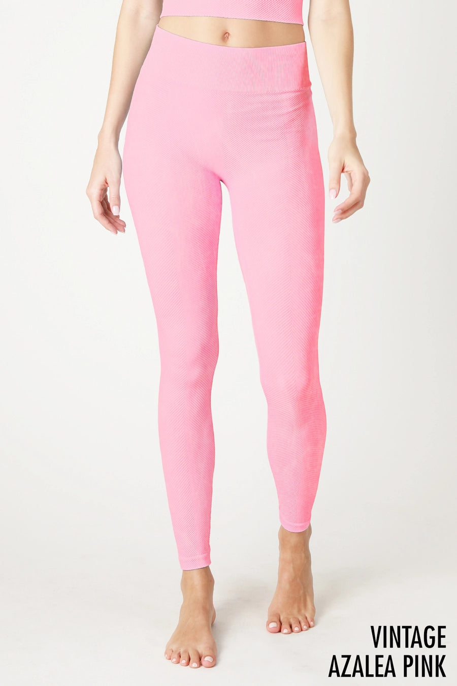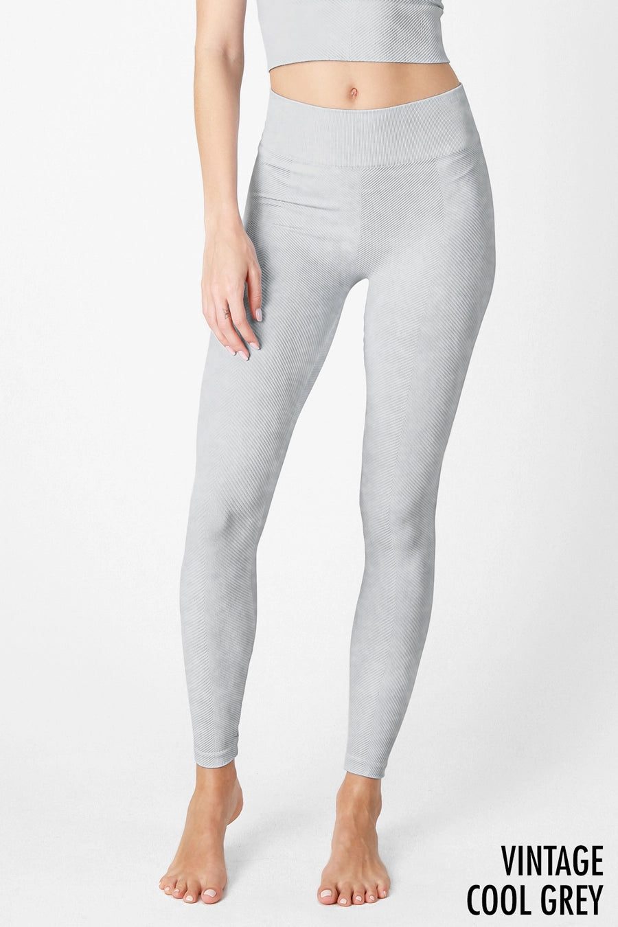 Enhance your look with these New Vintage Chevron High Waist Leggings. The ribbed texture and vintage chevron pattern create a unique style, while the thick waistband provides a strong, secure fit. Crafted with 92% Nylon and 8% Spandex and made in the USA, these leggings offer a comfortable and flattering style.