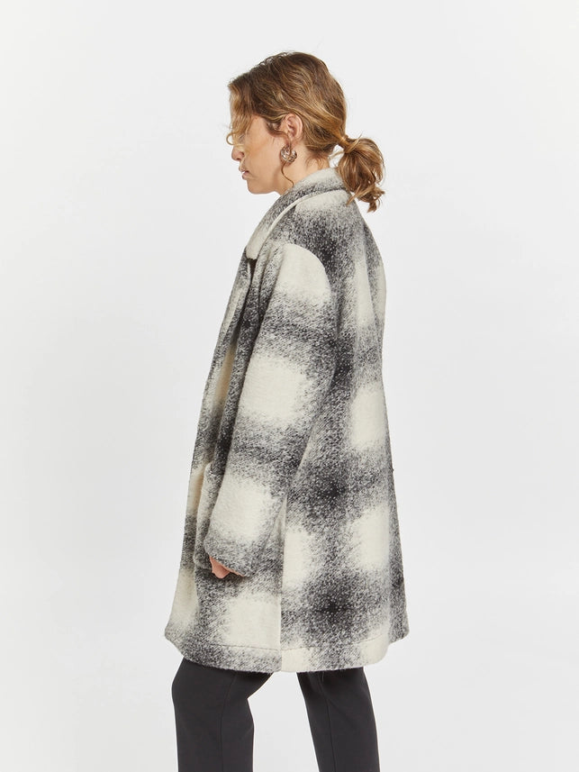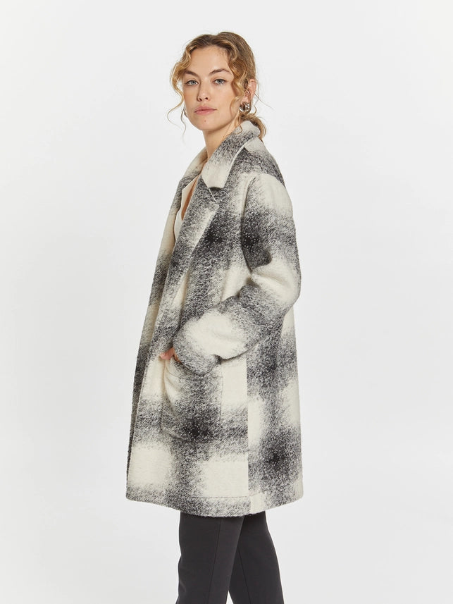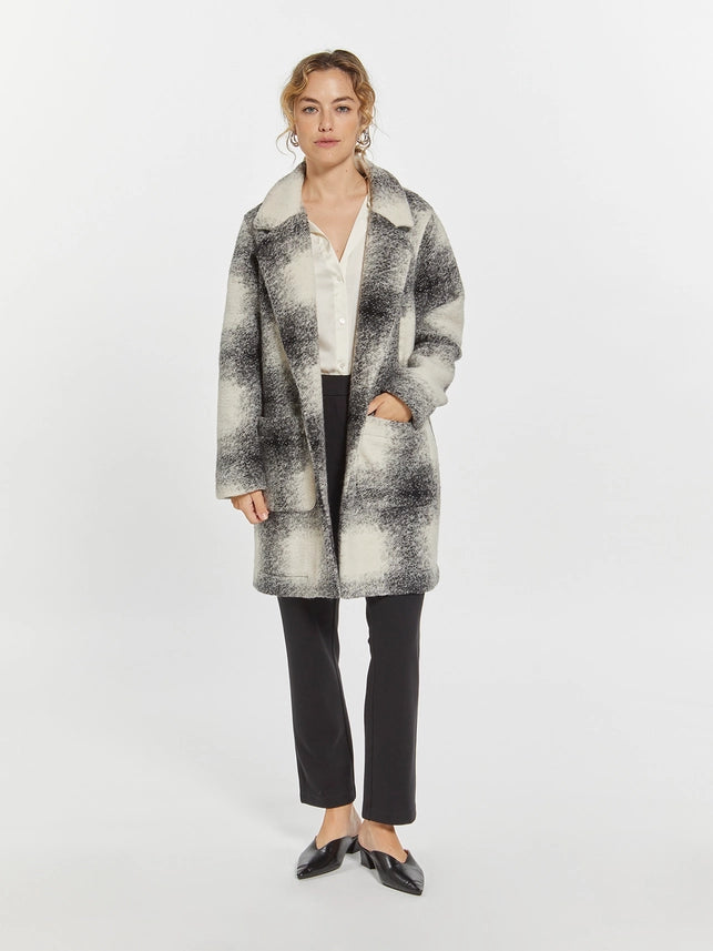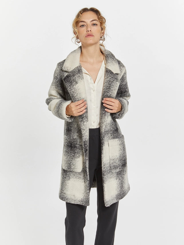 Stay stylish and warm this season with our Notch Lapel Coat - Pratt Coat. This coat features dual front pockets for convenience and a classic notch lapel design. Made with a blend of 30% wool and 70% polyester, it's perfect for the fall and winter season. Available in size small with a length of 34", chest front of 12", and sleeve length of 24.5". Expertly crafted for both fashion and functionality.