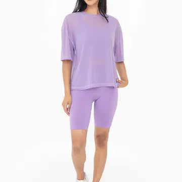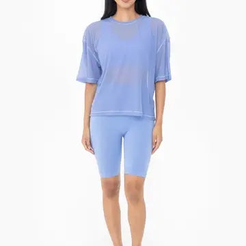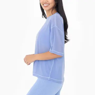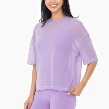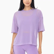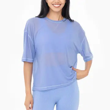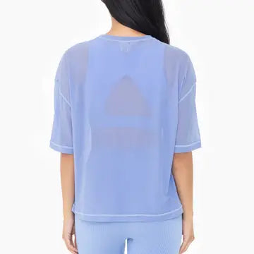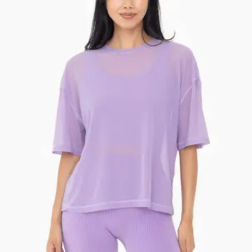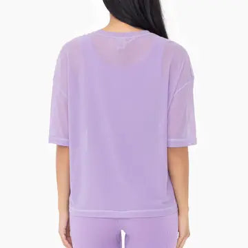 This Nylon Blend Boxy Sheer Mesh Tee offers a lightweight, breathable layer perfect for gym or casual wear. Crafted from a soft nylon and spandex blend, it features four-way stretch for unrestricted movement and a comfortable fit. Its boxy silhouette and sheer power mesh design make it ideal for layering over sports bras or bandeau tops, adding a modern, edgy touch to your activewear ensemble.