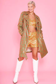 Orange Faux Suede Love Heart Trench Coat
