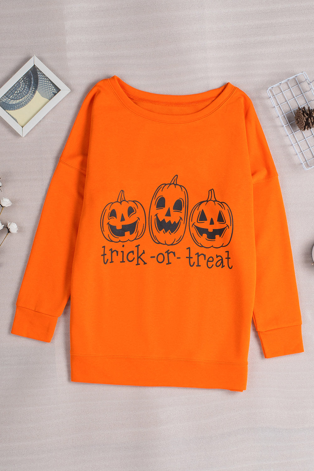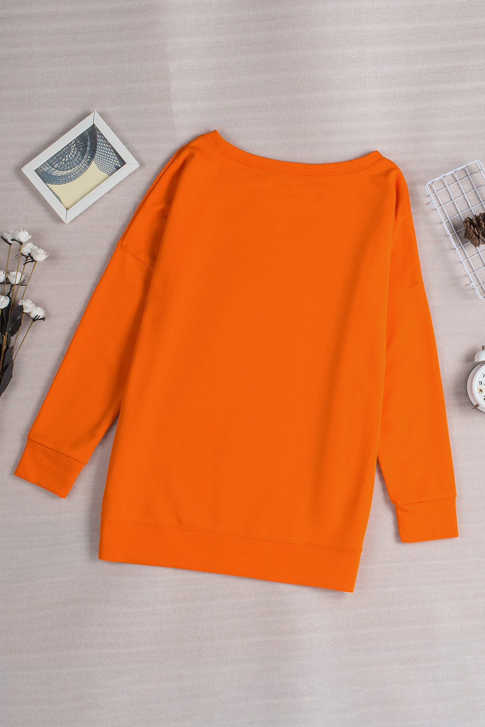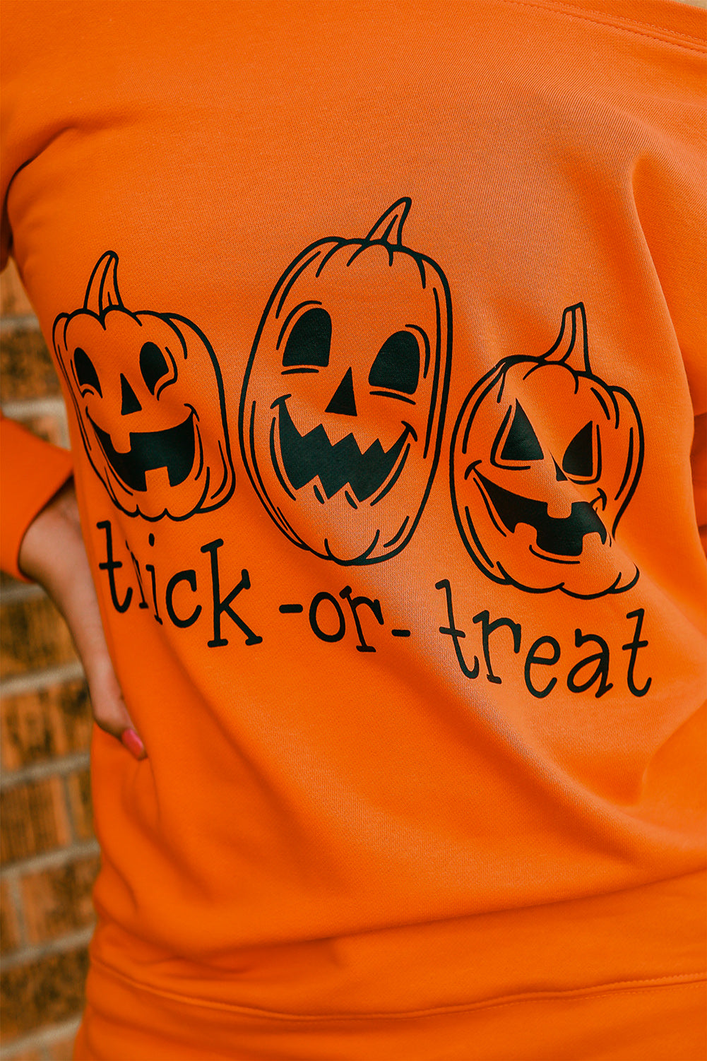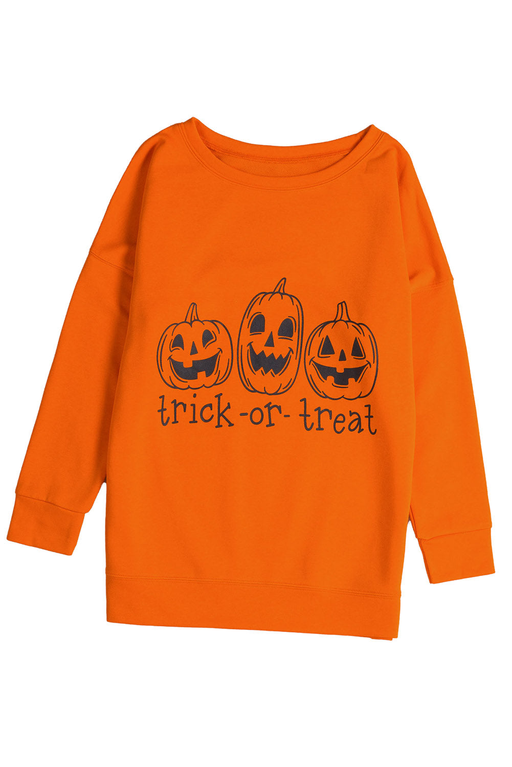 Orange Halloween Pumpkin Letter Print Sweatshirt