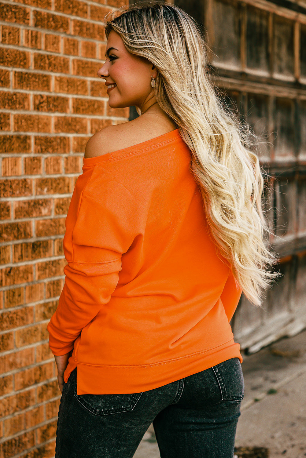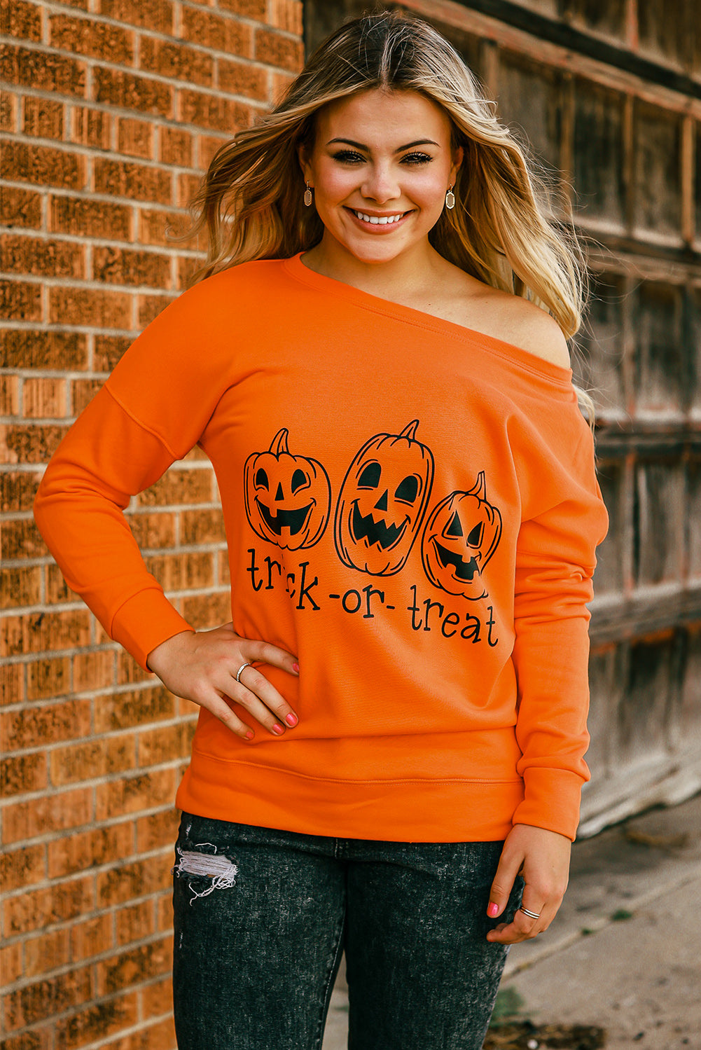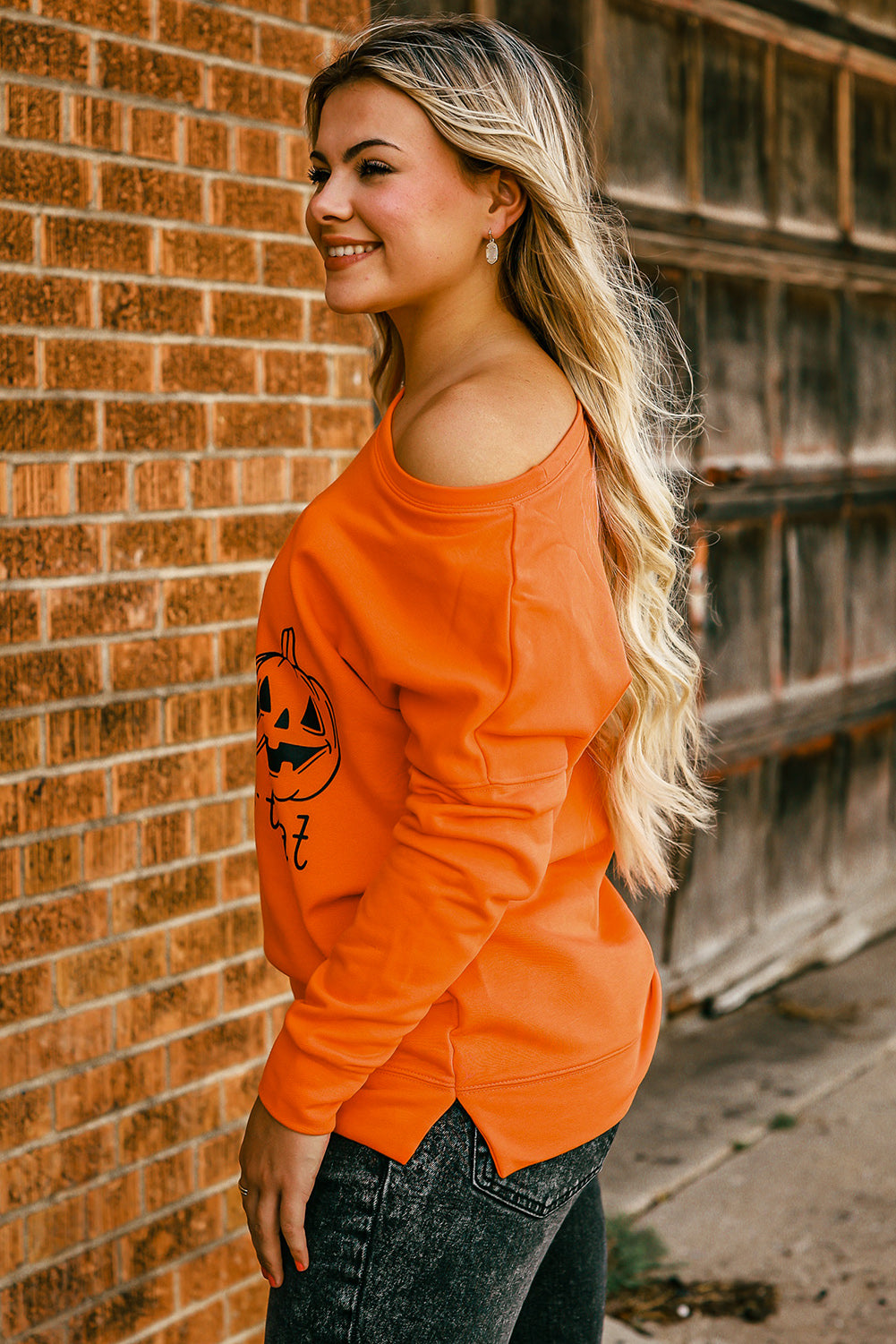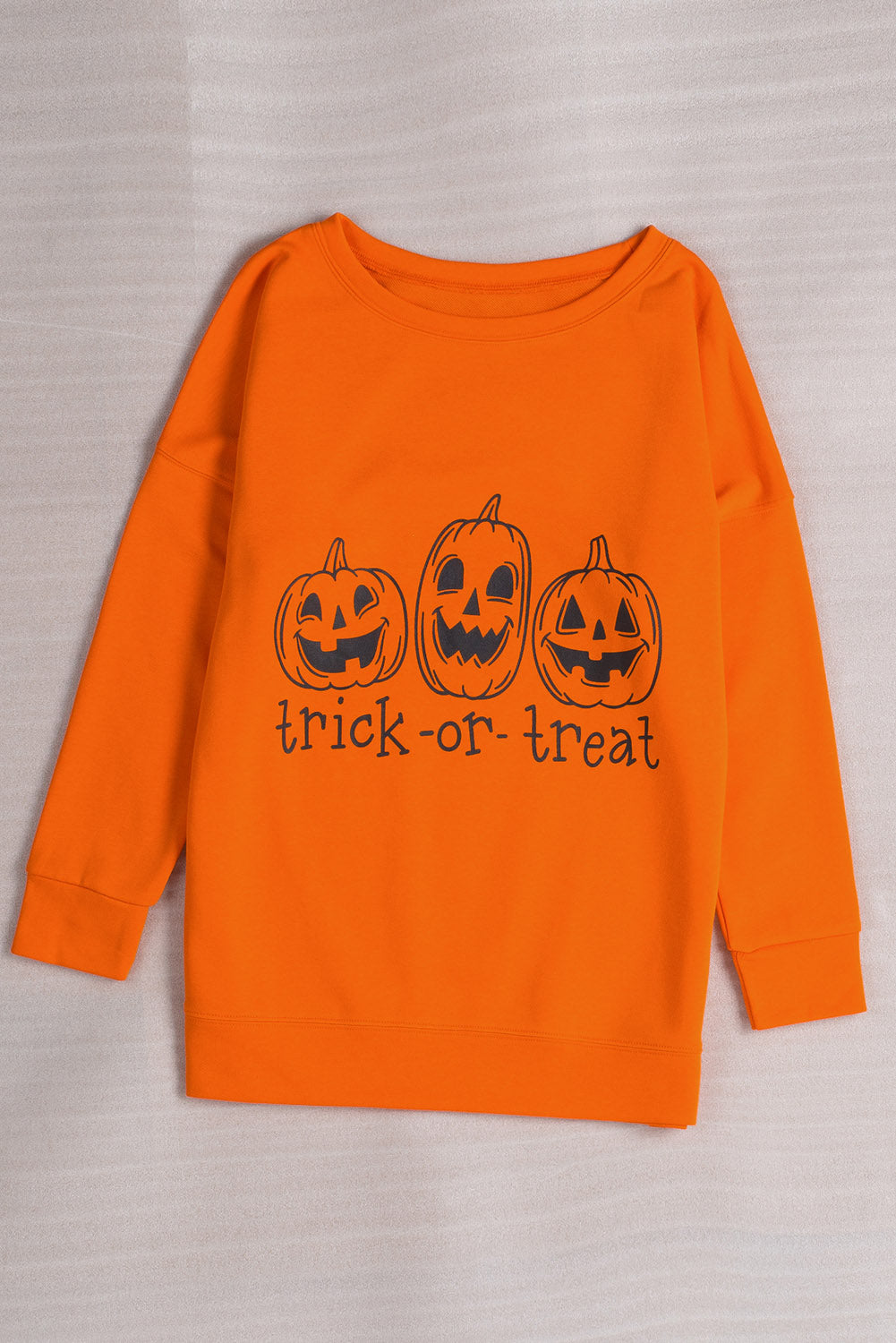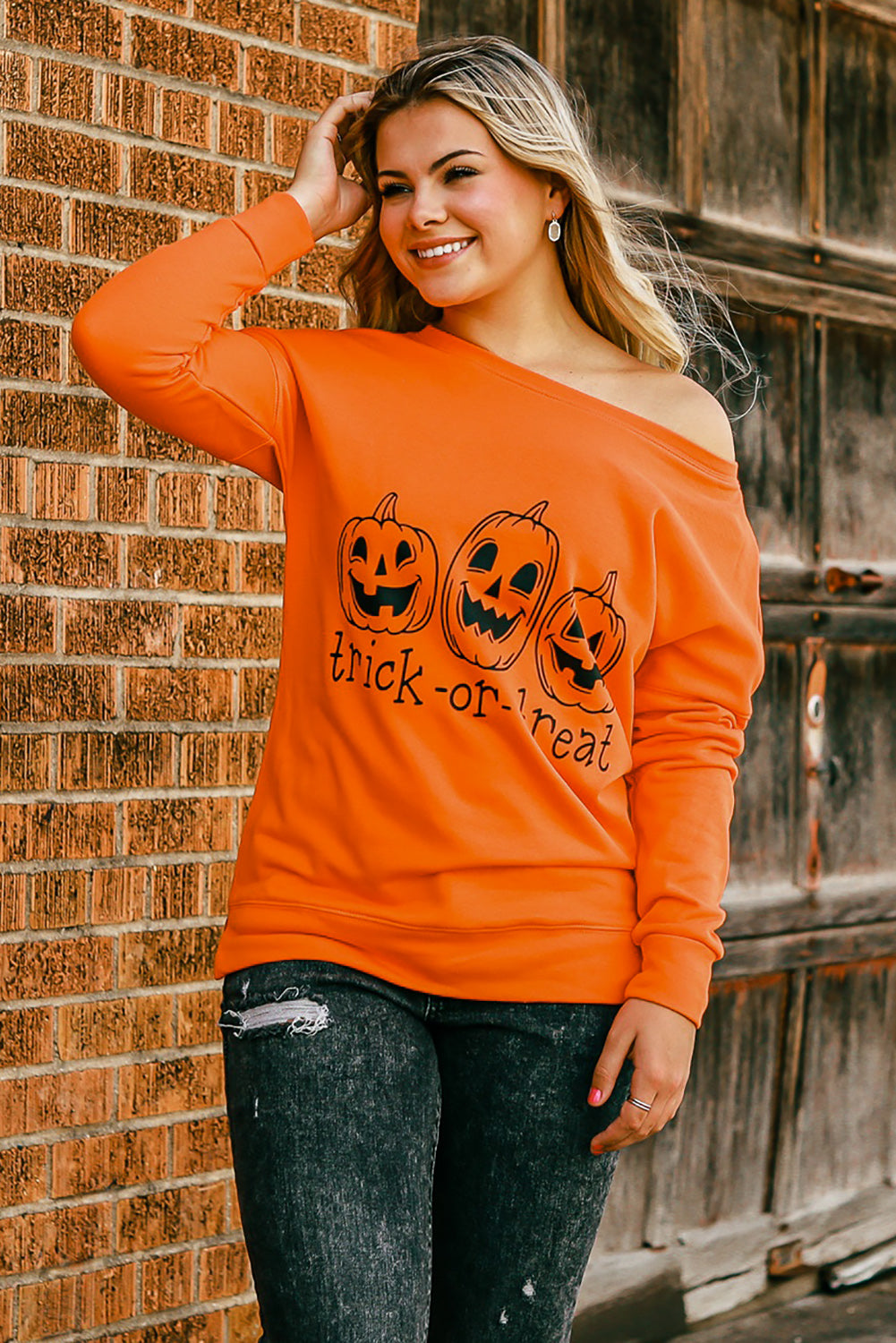 Orange Halloween Pumpkin Letter Print Sweatshirt