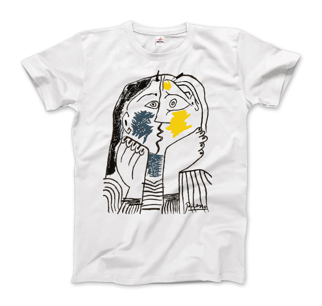 This amazing tee has an artwork of two women kissing. The theme of the couple, omnipresent throughout Picasso's career, became virtually an obsession toward the end of his life. The realism of the tender or violent scenes of kissing couples, usually portrayed without a decor, shows how much importance sexual love had for the artist.