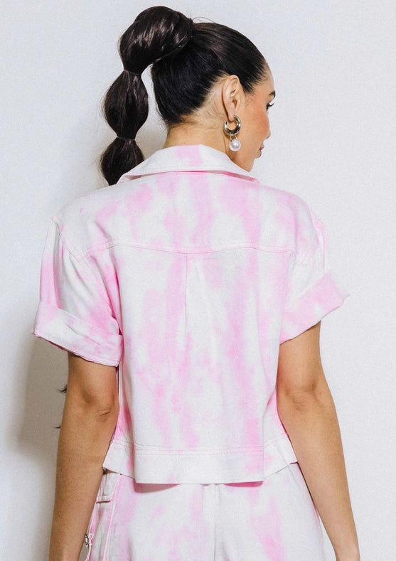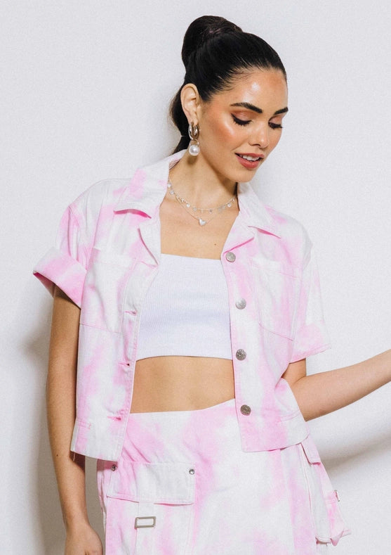 Take your casual wardrobe to the next level with our Phoebe Cropped Shaket. This versatile chambray shaket features a trendy tie dyed wash, practical chest pockets, and a convenient button up closure. Elevate your style and stay on trend with this must-have piece.