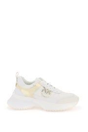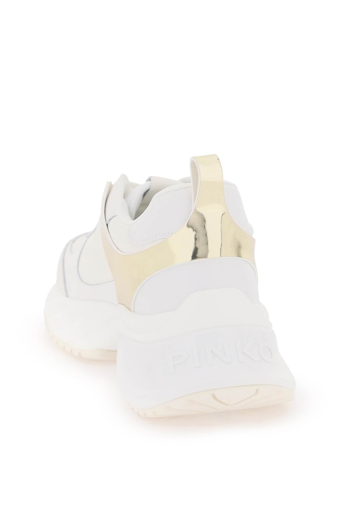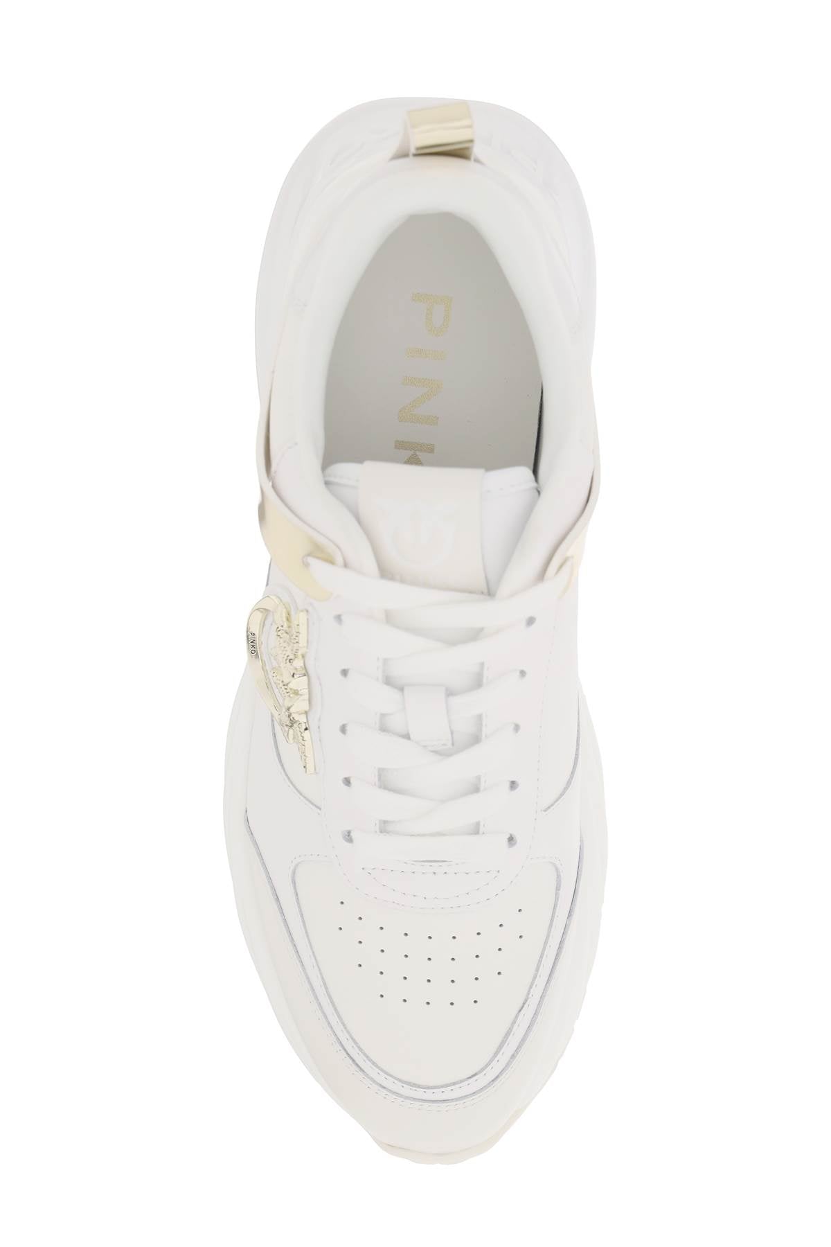 Pinko sneakers made of smooth and grained leather with laminated inserts and iconic Love Birds plaque on the side. Lace-up closure, fabric interior with leather insole, back pull tab and rubber sole. Heel Height = 5 cm