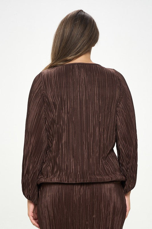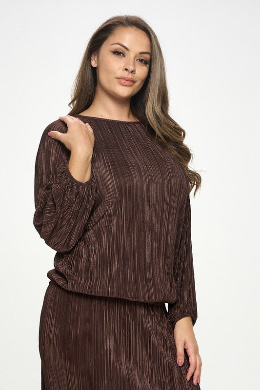 Made in USA Plisse Solid Round neck Top with 3/4 Sleeve. Fabric content: 100% Polyester. Available in other Colors.