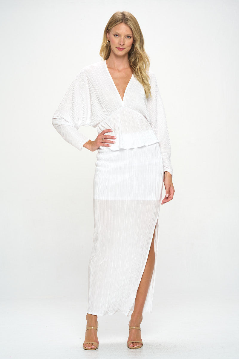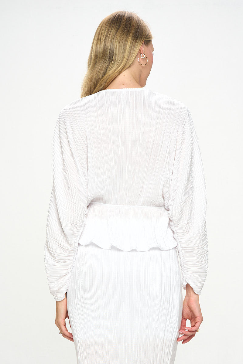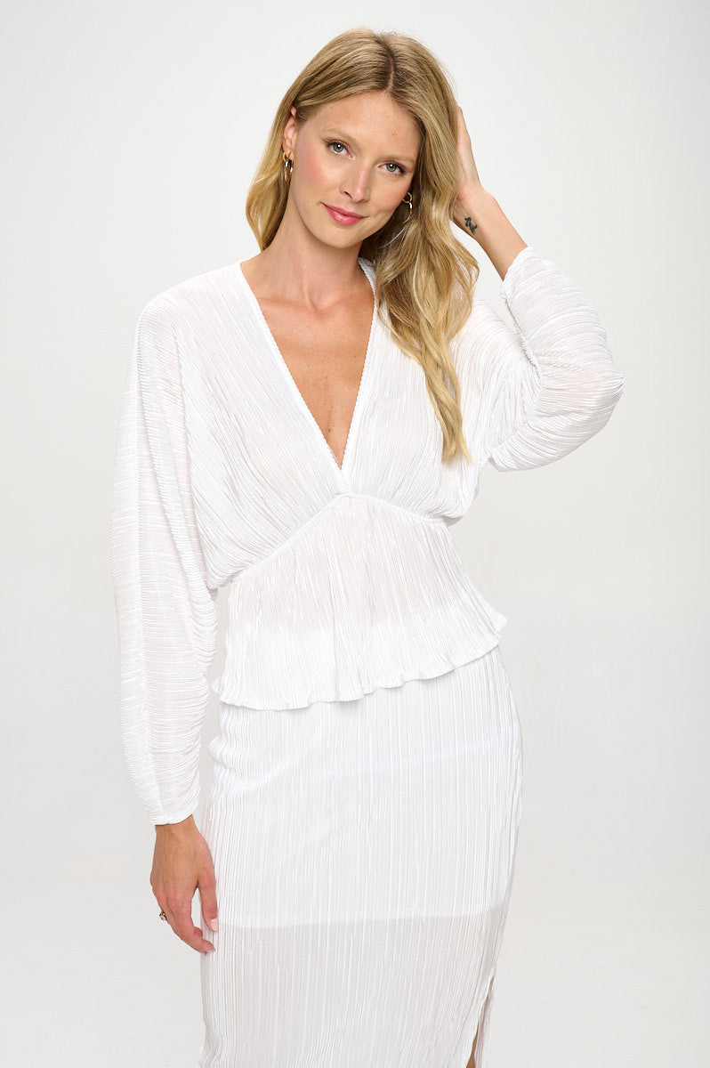 Plisse V neck Top with Balloon Dolman Sleeve-New Arrival-Reneecollection-Small-WHITE-Urbanheer
