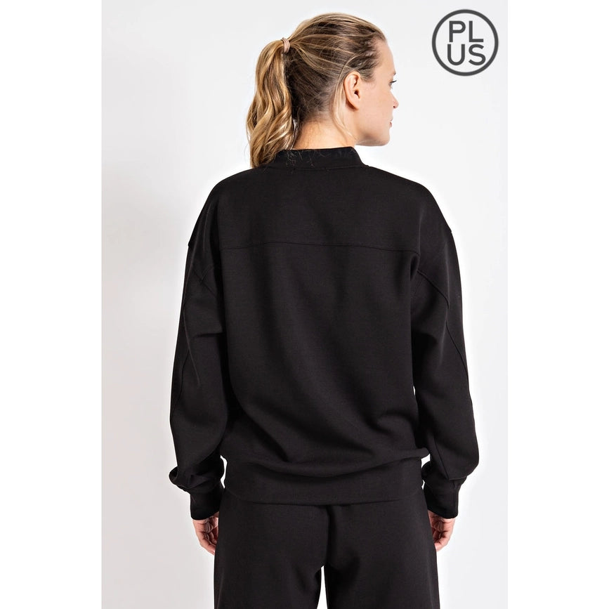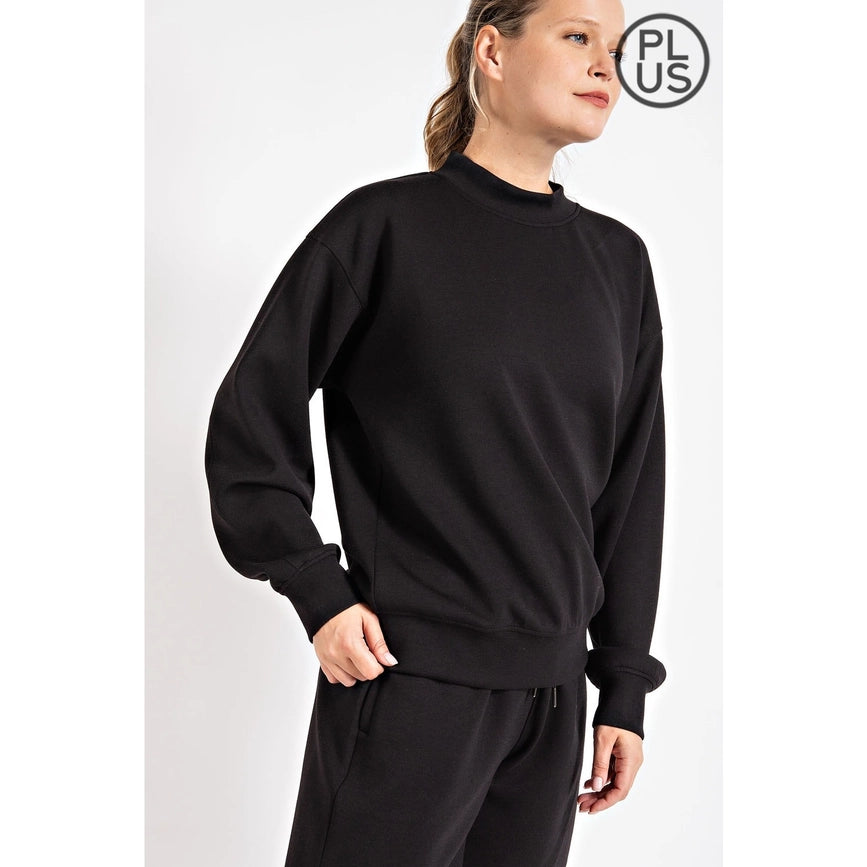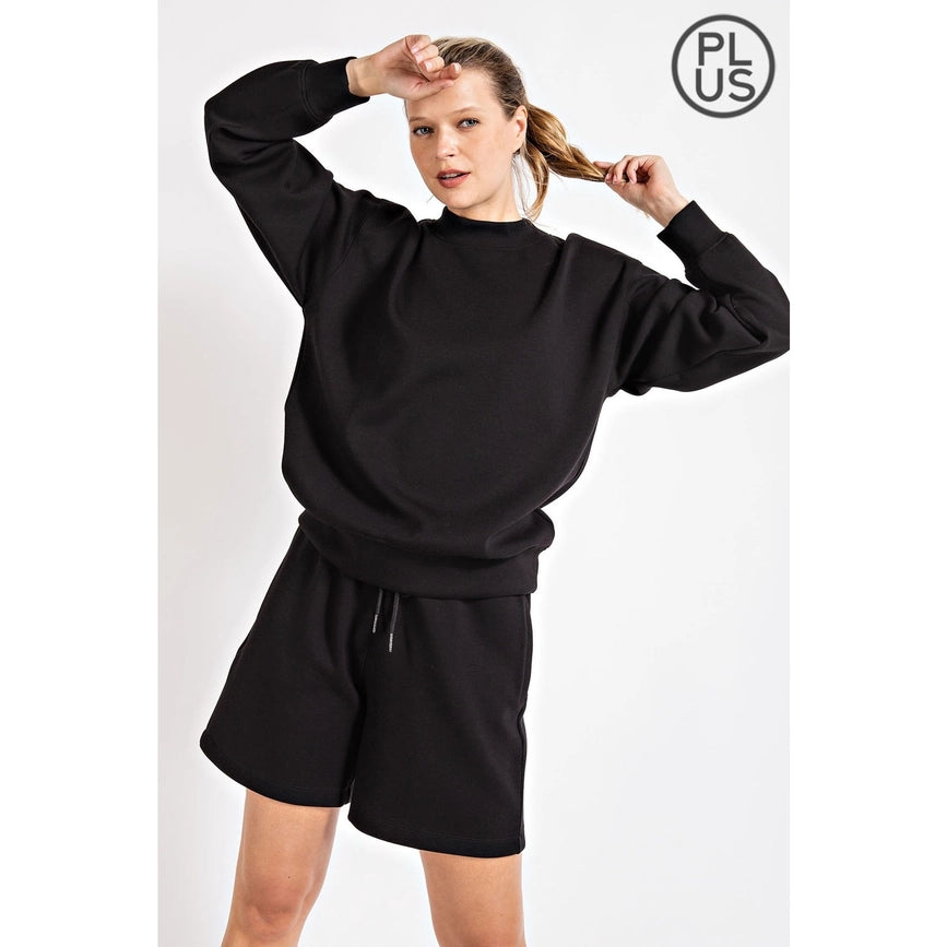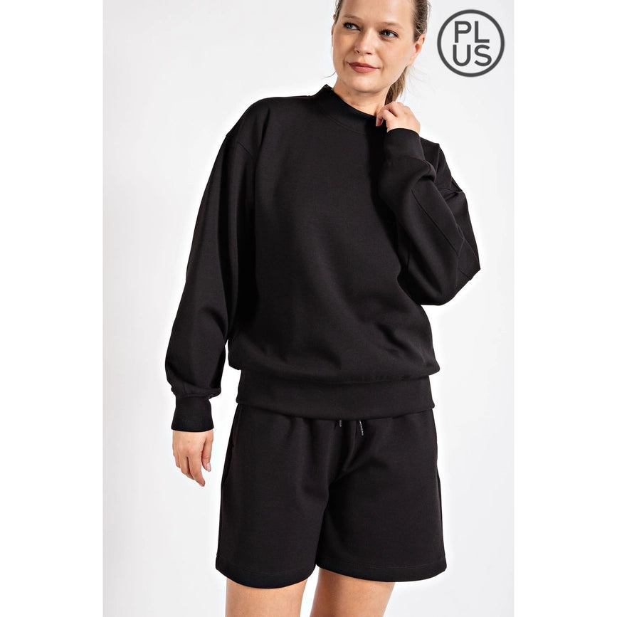 Plus Size Ponti Crew Neckline Long Sleeves Sweatshirt-Sweatshirt-Rae Mode-1X-Black-Urbanheer