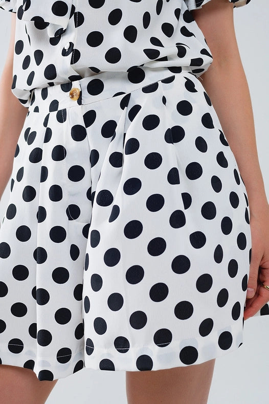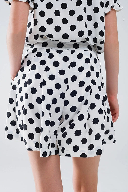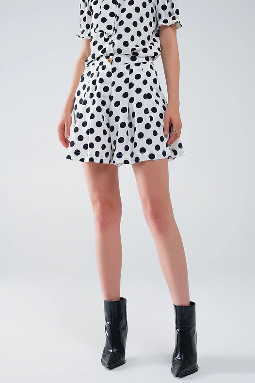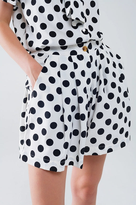 These polka dot shorts with pockets are a must-have for any fashion-forward individual. Made with lightweight woven fabric and a standard fit, they provide both comfort and style. The straight leg, button closure, and zip fastening make them perfect for daily wear. Plus, the matching blouse completes the look.