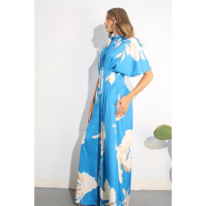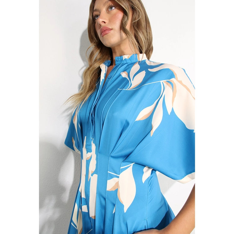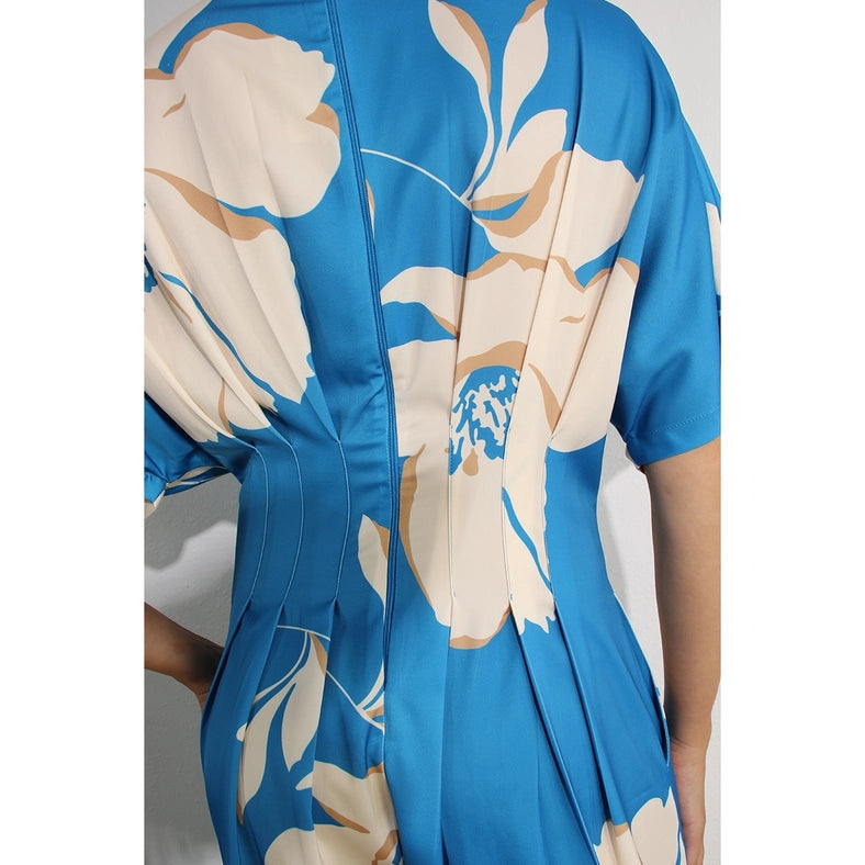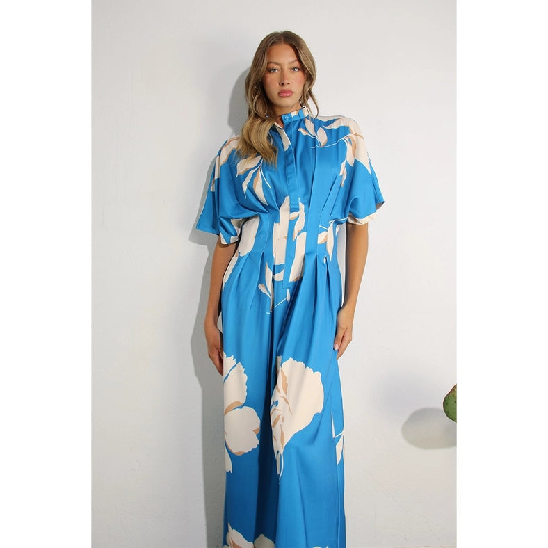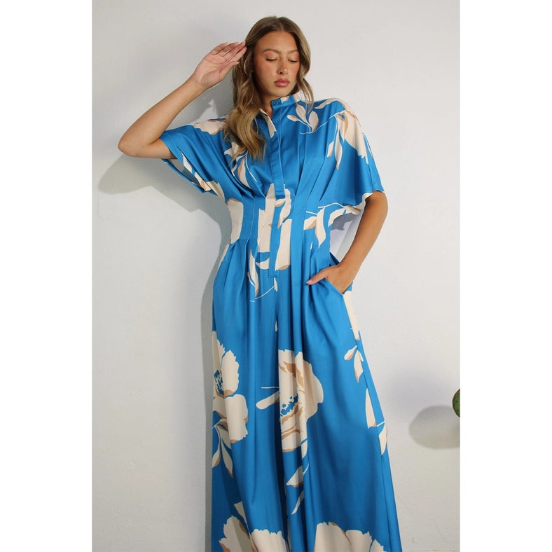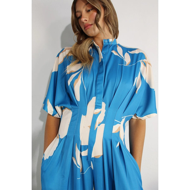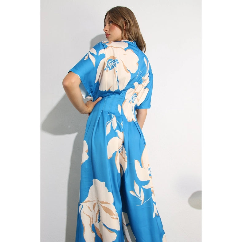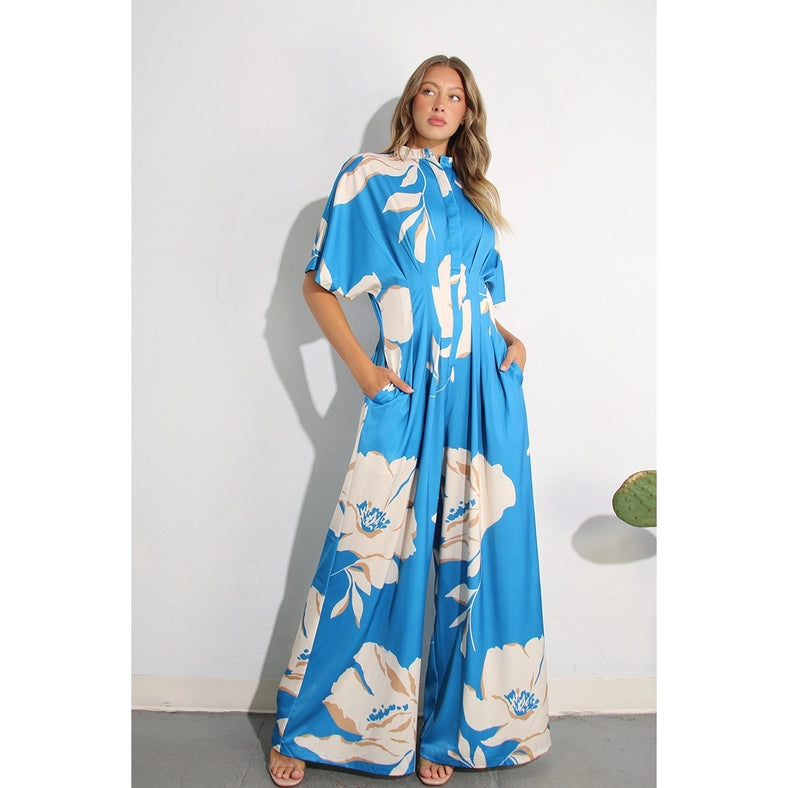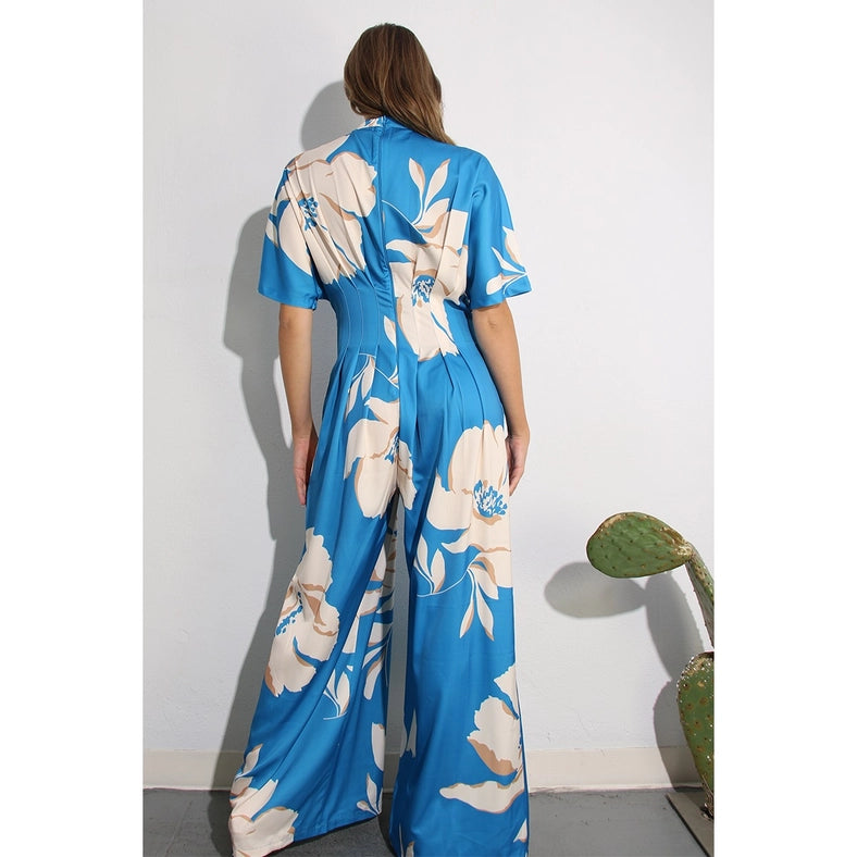 Elevate your style with our Print Pleated Jumpsuit. Designed with a flattering pleated print, this jumpsuit will add a touch of elegance to any occasion. Made to fit perfectly, our model showcases the sleek design with her height of 5'8" and a bust size of 34C. Trust in our size small for a flawless fit.