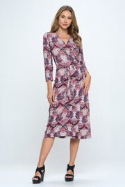 Print V neck Jersey Wrap Dress with Tie