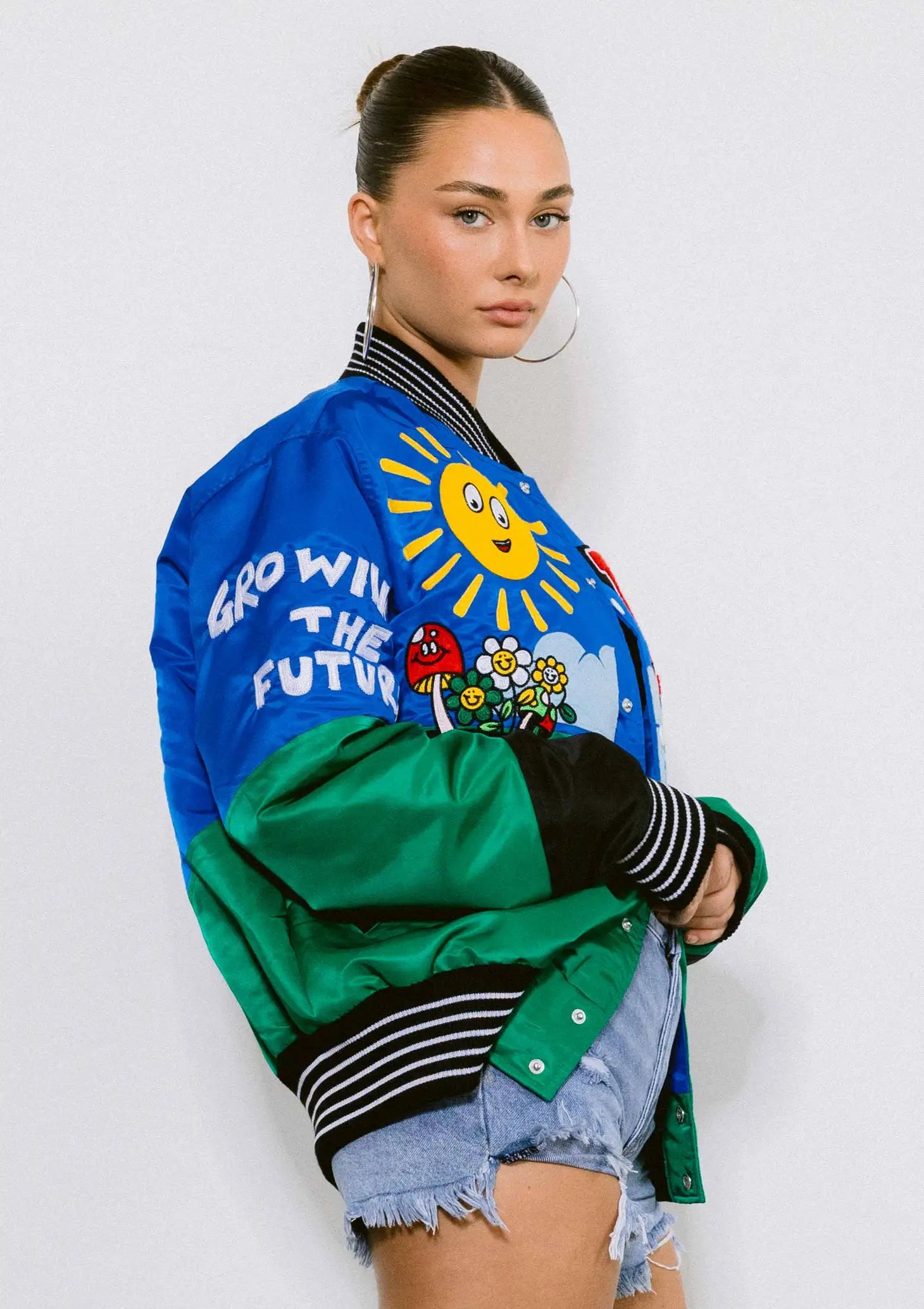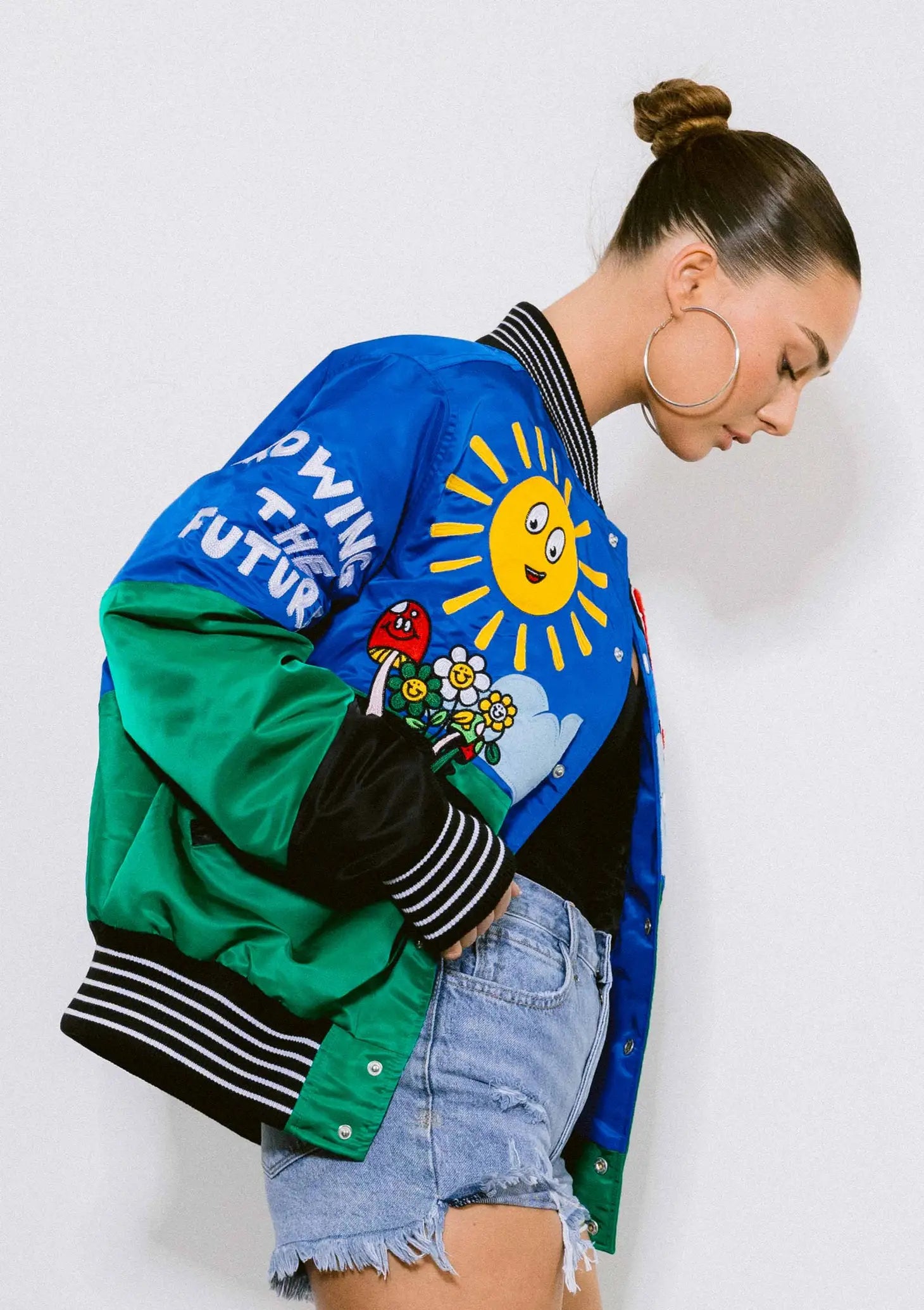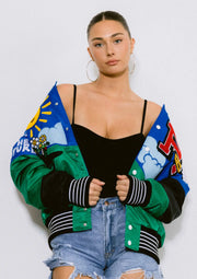 This retro fit varsity jacket is perfect for those with a classic 90s style. It comes with contrast sleeves and striped ribbing trims, along with multi chenille patches and faux leather accents. It also features double welt pockets and a snap button closure for added style and convenience. With a chest measure of 25" and a length of 26 1/2", this size M jacket fits perfectly on models 5'8" and taller.
