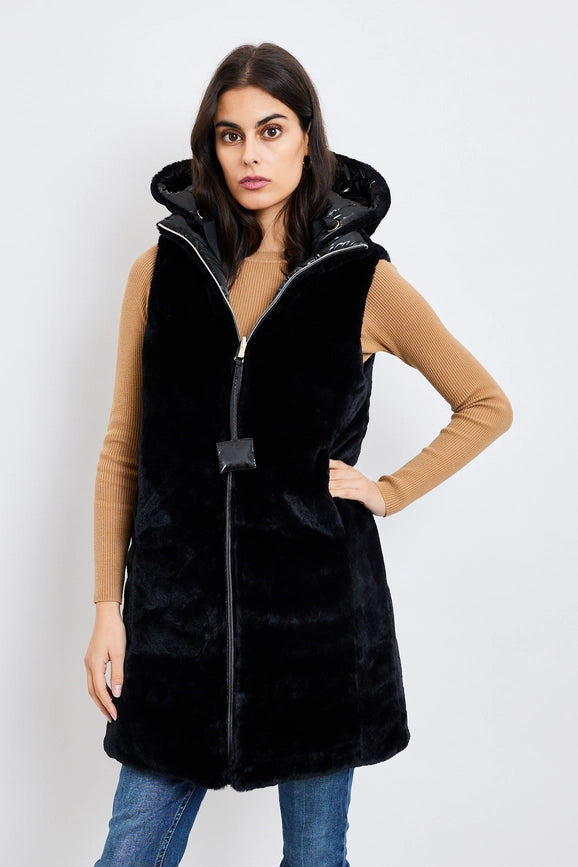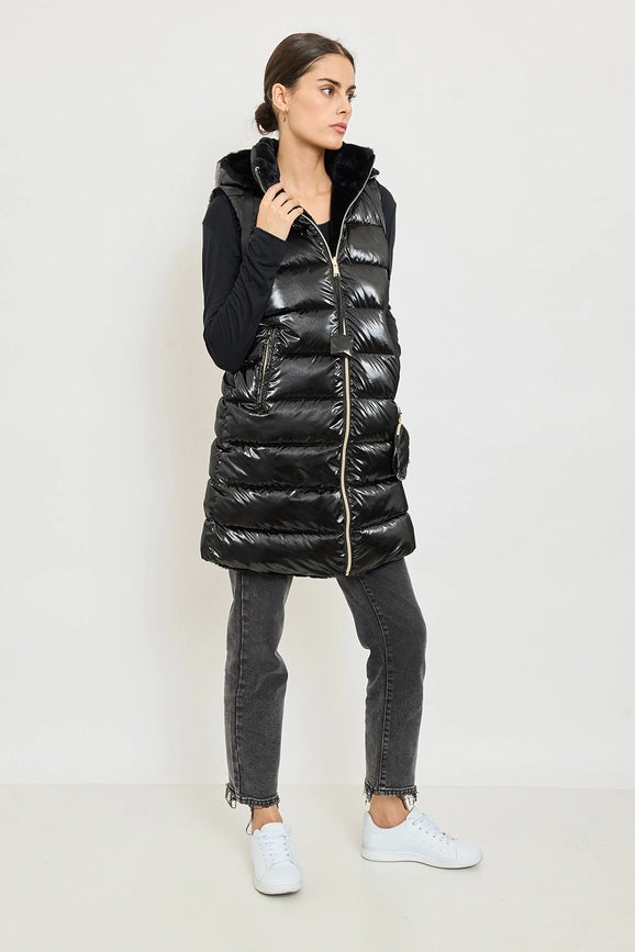 The Reversible Sleeveless Jacket offers versatility with its reversible design and removable accessory pouch. Made with a model-friendly 1m75 height and size S, it is perfect for any occasion. Stay stylish and organized while making a statement.