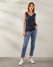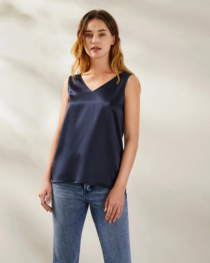 Reversible V&U Neck Silk Camisole Navy Blue-Camisole-MommeSilk-XS-Urbanheer