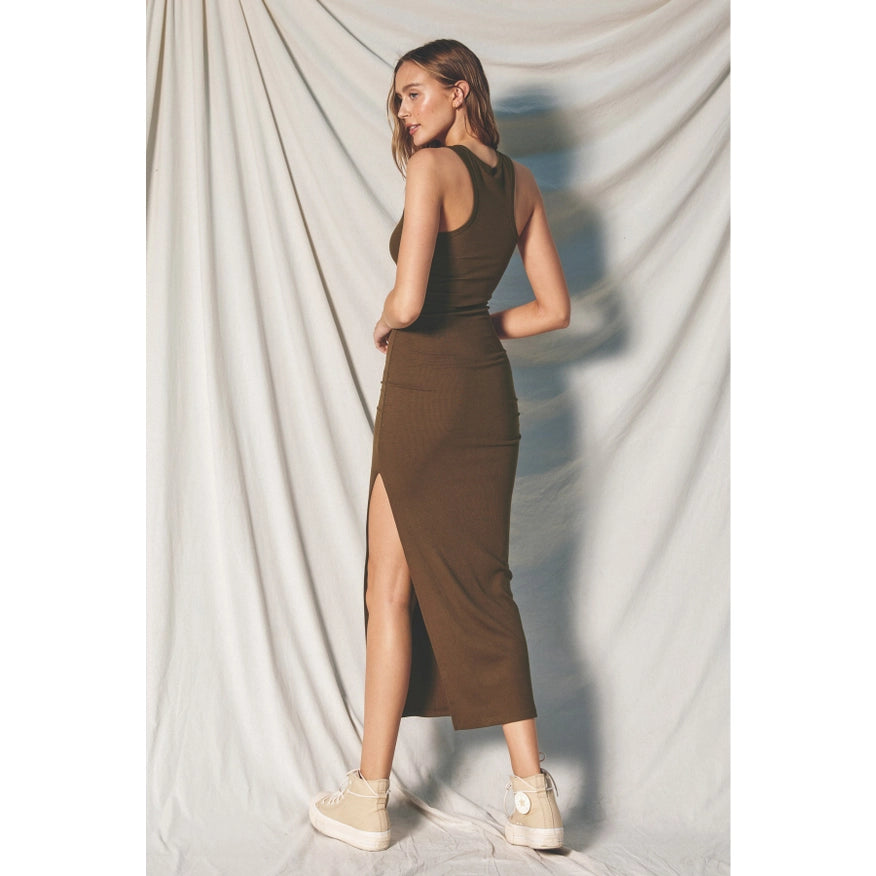 Ribbed Racerback Ruched Midi Dress Coffee Bean