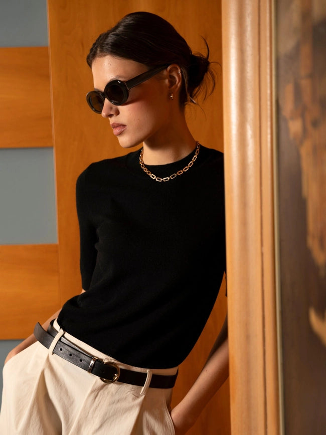 Crafted from pure cashmere, the Roma Cashmere Sweater is a must-have for any wardrobe. This essential piece offers a versatile and effortless style, making it the perfect addition to any outfit. Indulge in luxurious comfort with this high-quality sweater.