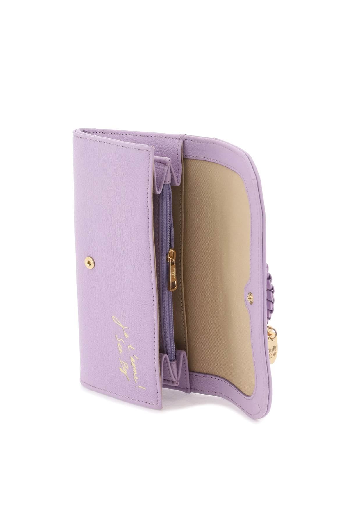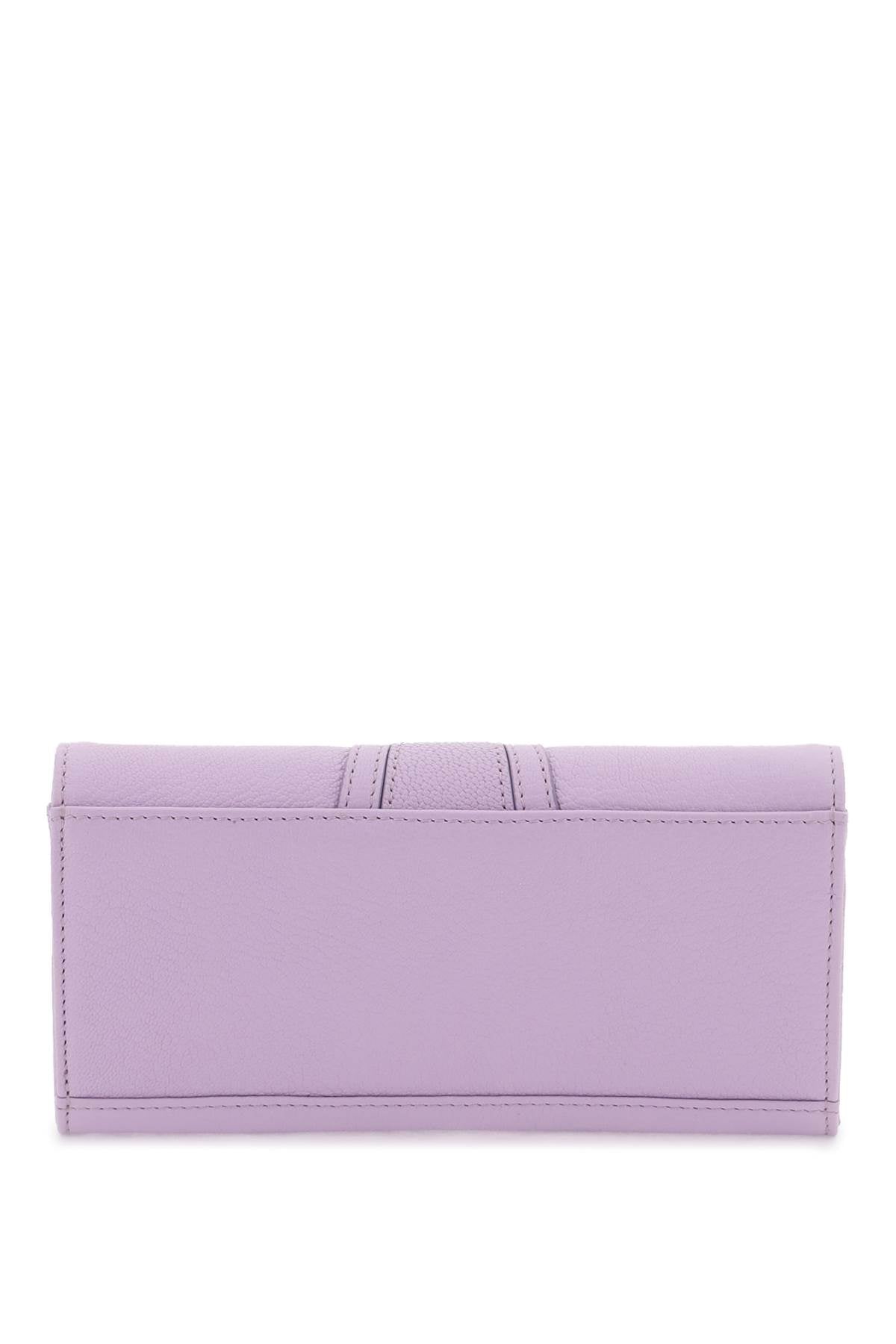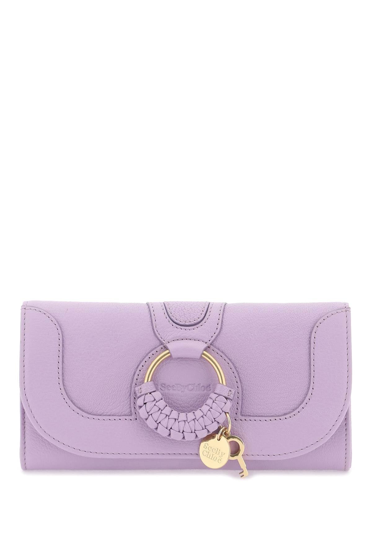 Expertly crafted with grained leather and gold-tone brass hardware, the See by Chloé Hana wallet is a luxurious addition to any wardrobe. Featuring the iconic metal ring and braided leather insert, this wallet is not only stylish but also functional with its divided interior, slip and zip pockets, and twelve card slots. Organize your essentials in style.