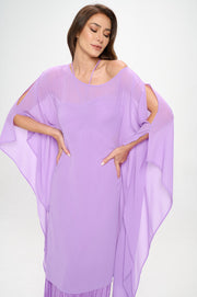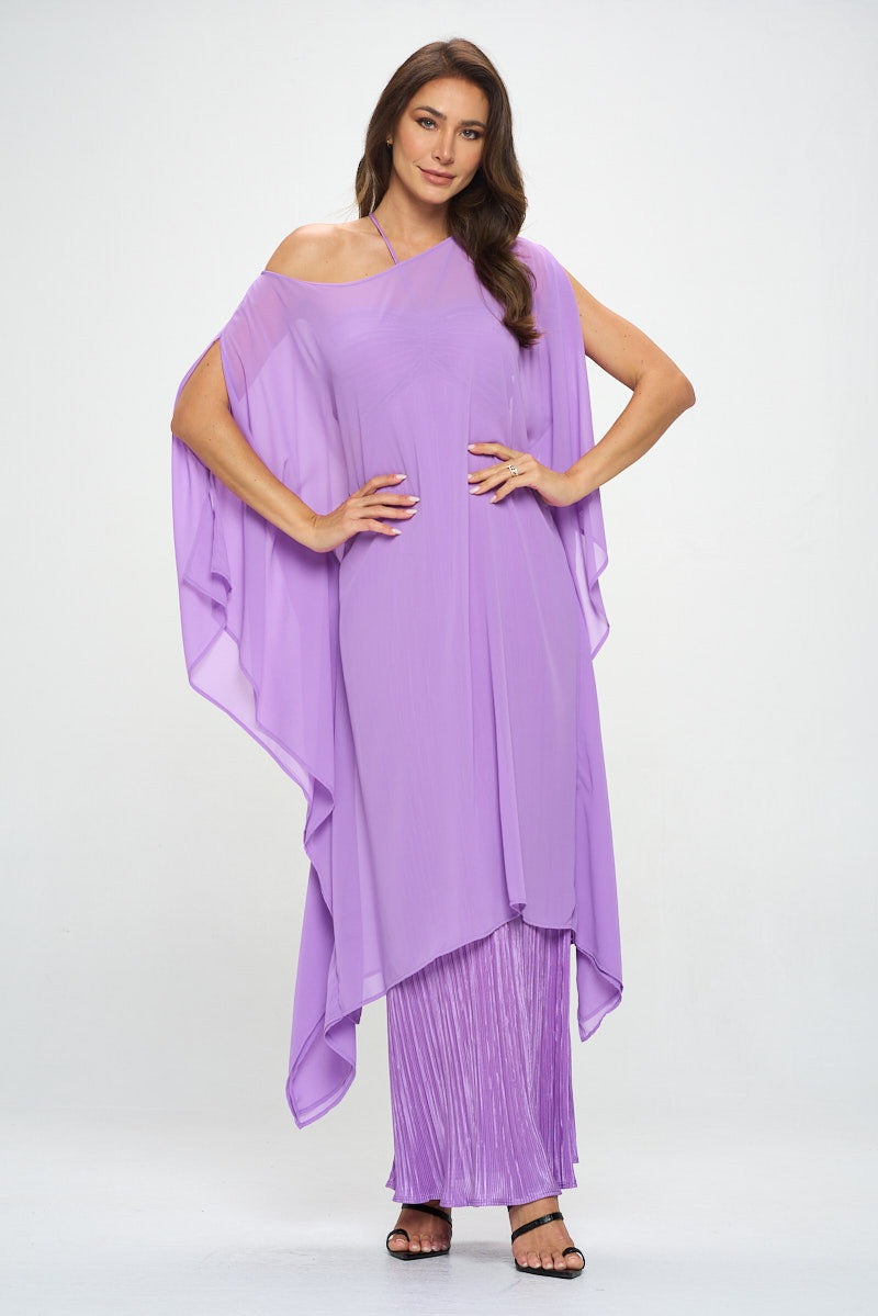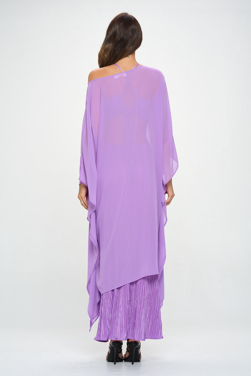 Made in USA Sheer Crepe Chiffon Draped Tunic Dress. Fabric content: 100% Polyester.