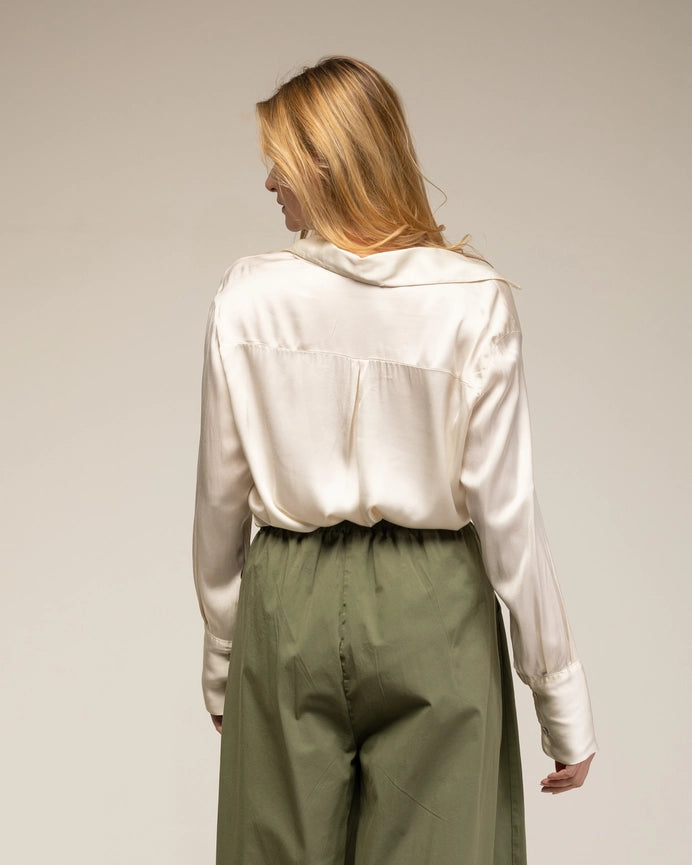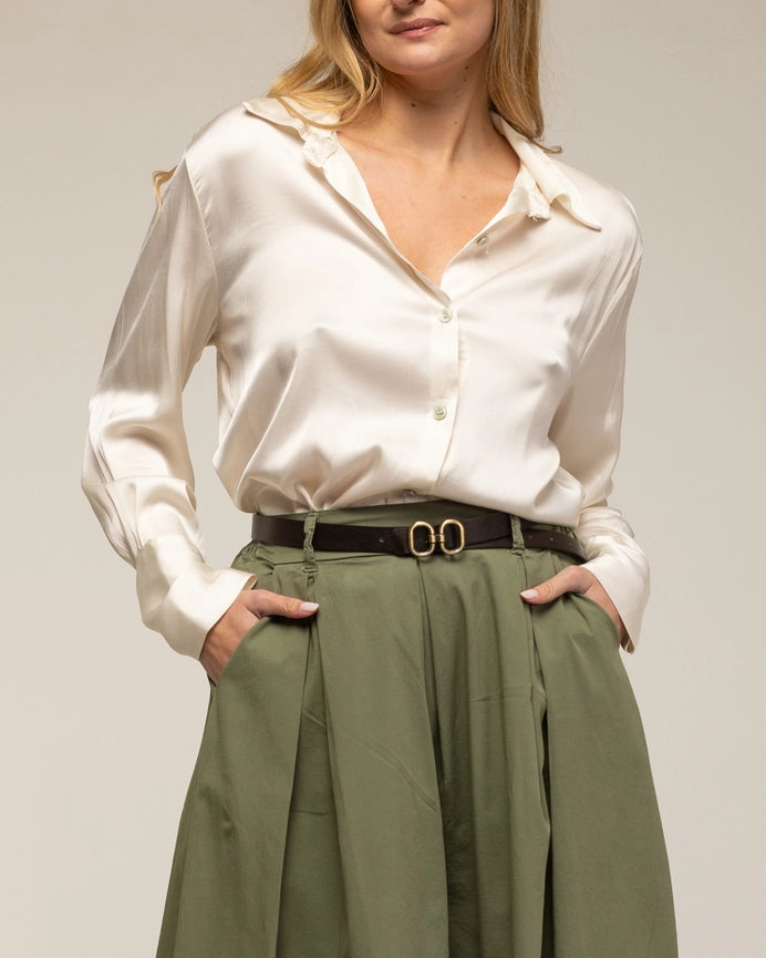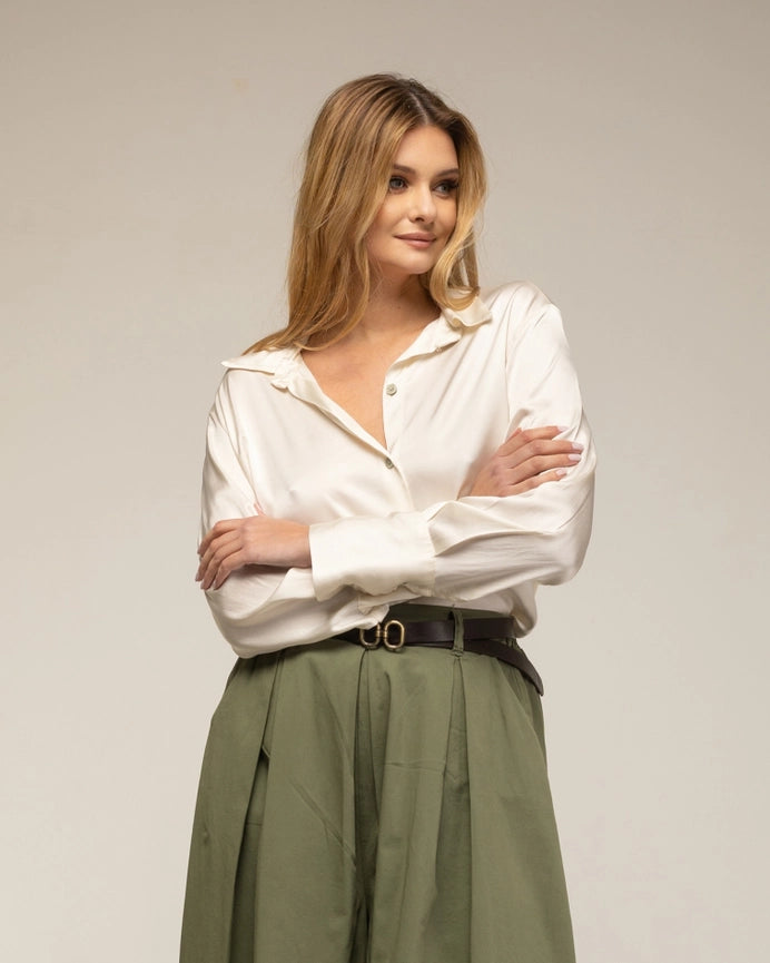 Shirt with Button Closure Silk, Wide Cuffs BEIGE