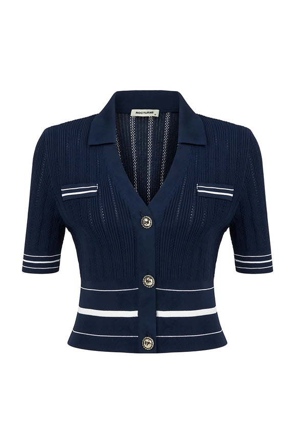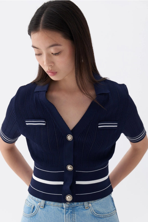 Stay cozy and chic with our Short Sleeve Buttoned Knit Cardigan. Designed in Turkey, this 100% Viscose cardigan features a shirt collar and fillet pockets for a stylish touch. Its short sleeves make it perfect for layering, and its hand washable fabric ensures easy care. Complete any outfit with this must-have piece.