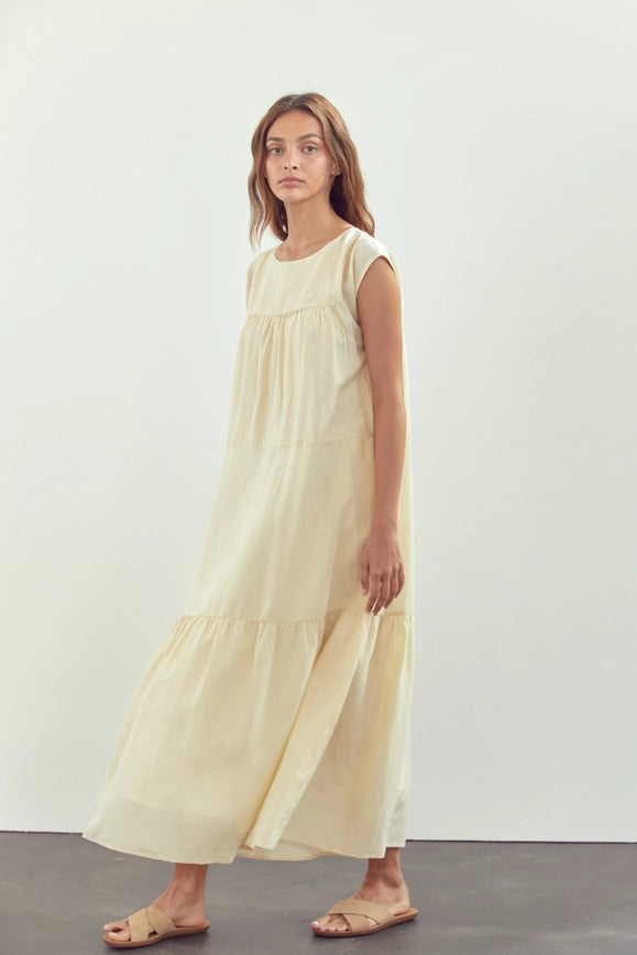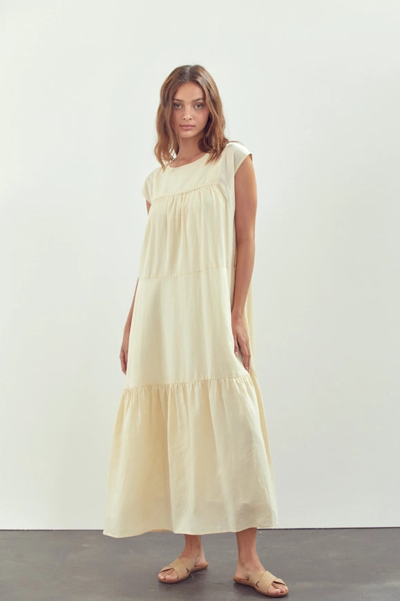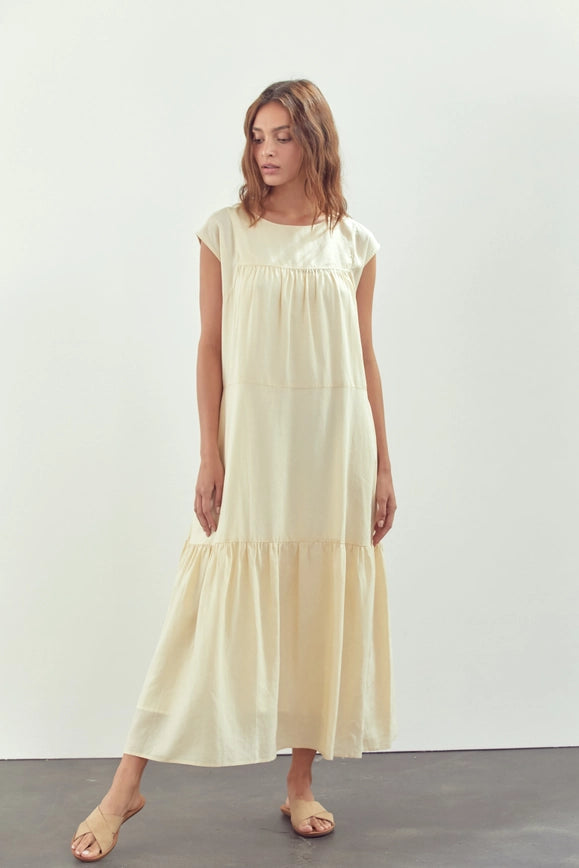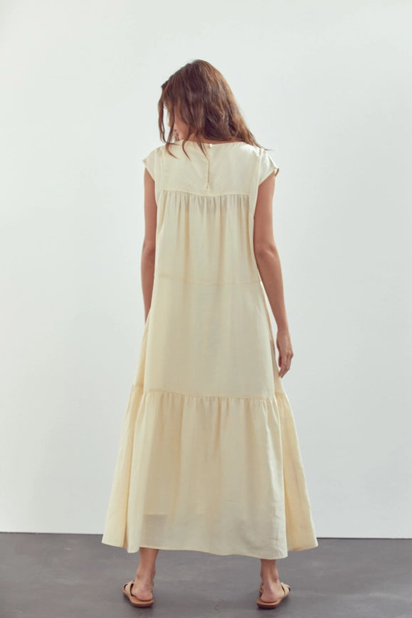 Expertly crafted with sustainability in mind, our Short Sleeve Tiered Midi Dress features consciously sourced fabrics like cotton, linen, and Tencel. Not only are these natural materials of the highest quality, but they also help reduce environmental harm and are easily recyclable. Embrace style and sustainability with this dress.