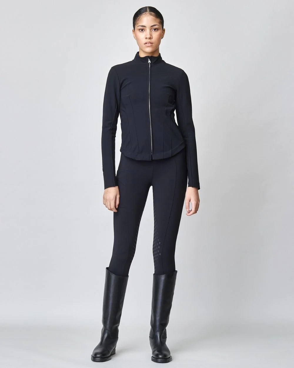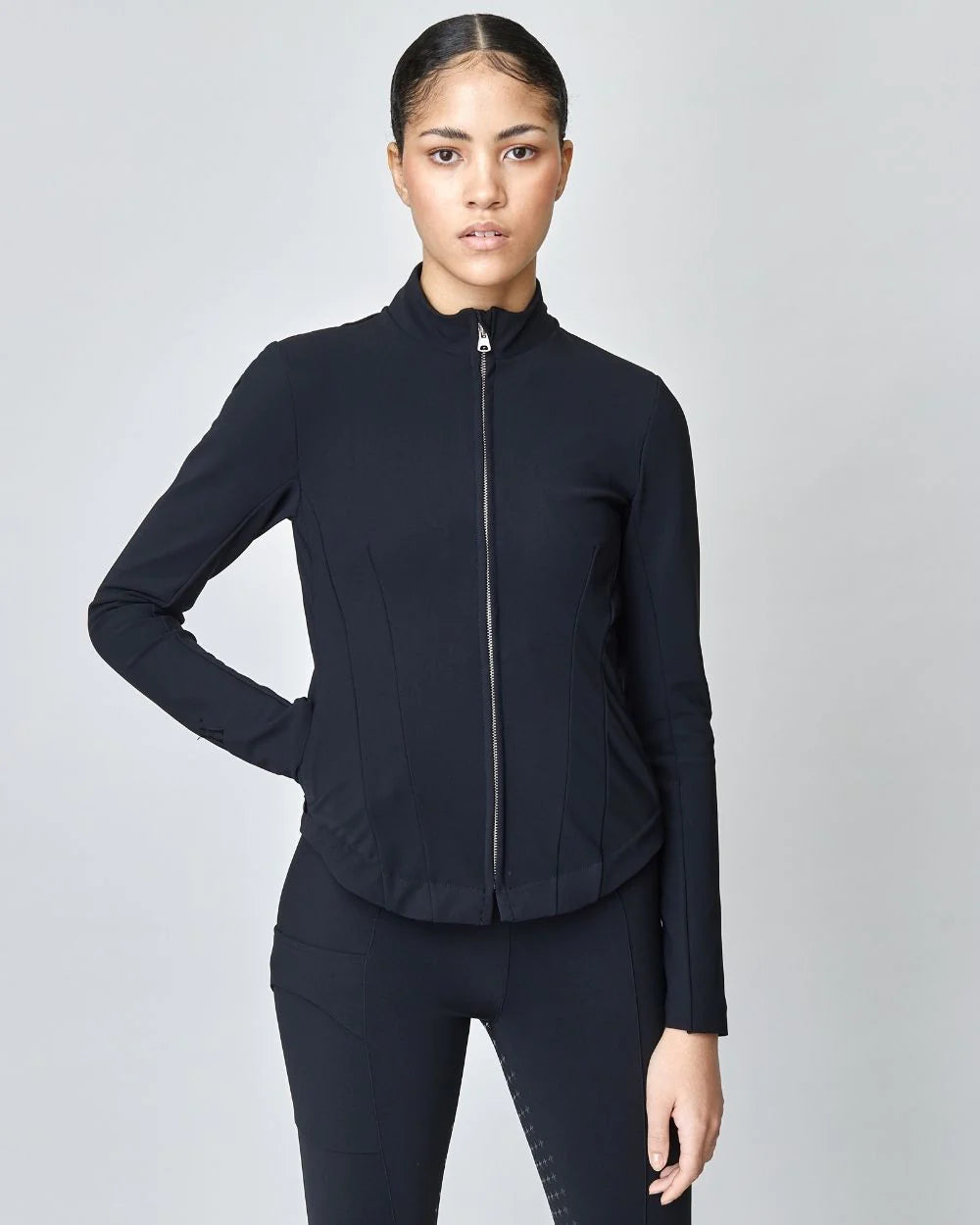 Expertly crafted from exclusive Italian jersey fiber, our Signature Riding Jacket is perfect for layering. Its fast-drying and UV protecting properties make it ideal for any weather. Cut to a fitted silhouette with straight lines and hidden pockets, it pairs perfectly with our riding breeches. Made in Portugal.