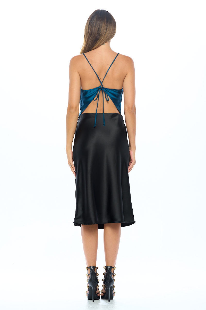 Silky Stretch Satin Solid Backless Tie Top
