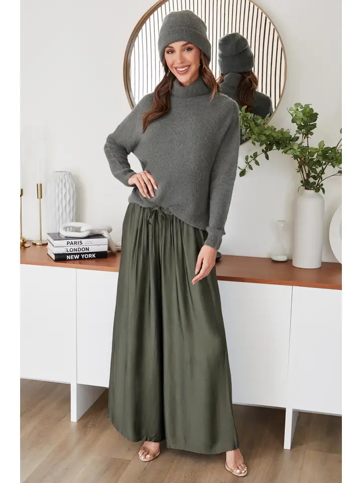 Elevate your wardrobe with these expertly crafted silky wide leg pants, made in Italy from a luxurious blend of 70% viscose and 30% silk. The high-quality fabric ensures a smooth, elegant drape, while the wide leg silhouette offers both comfort and a flattering fit. Ideal for core season wear, these pants combine sophistication with versatility, making them a refined choice for any occasion.