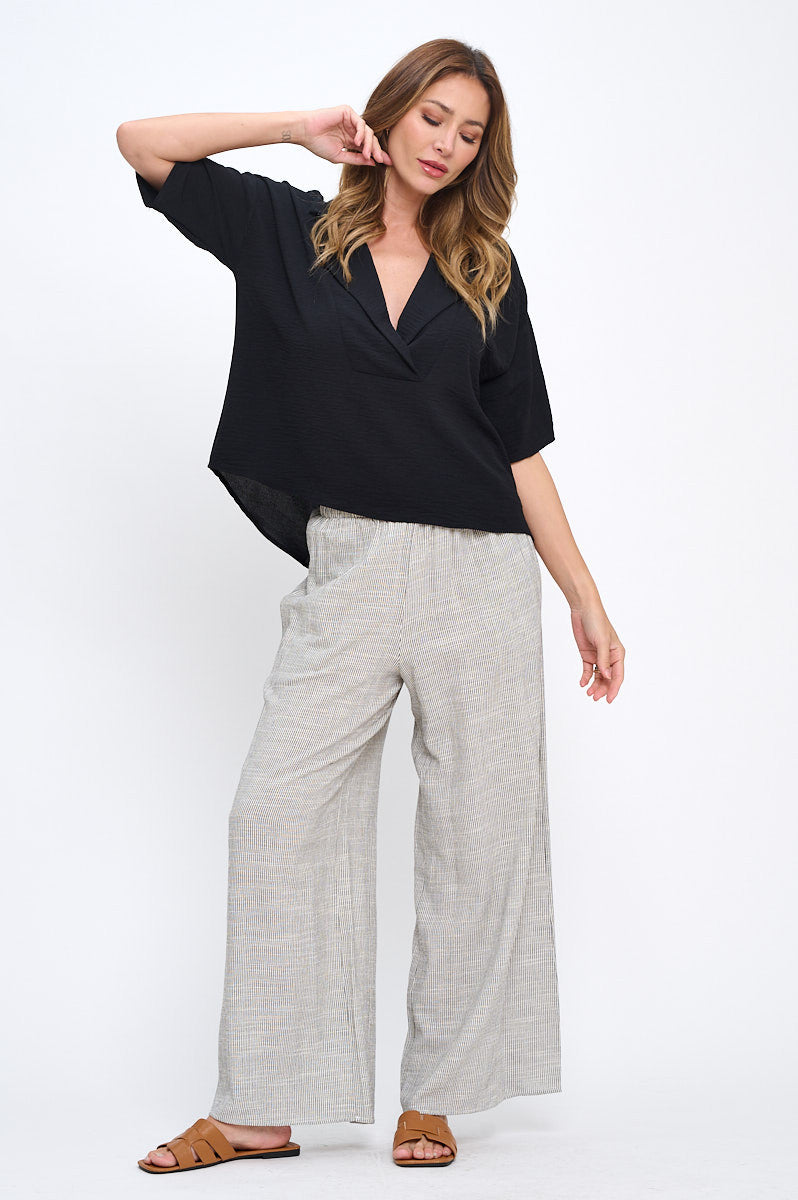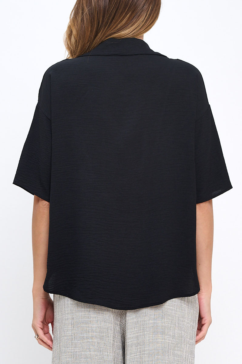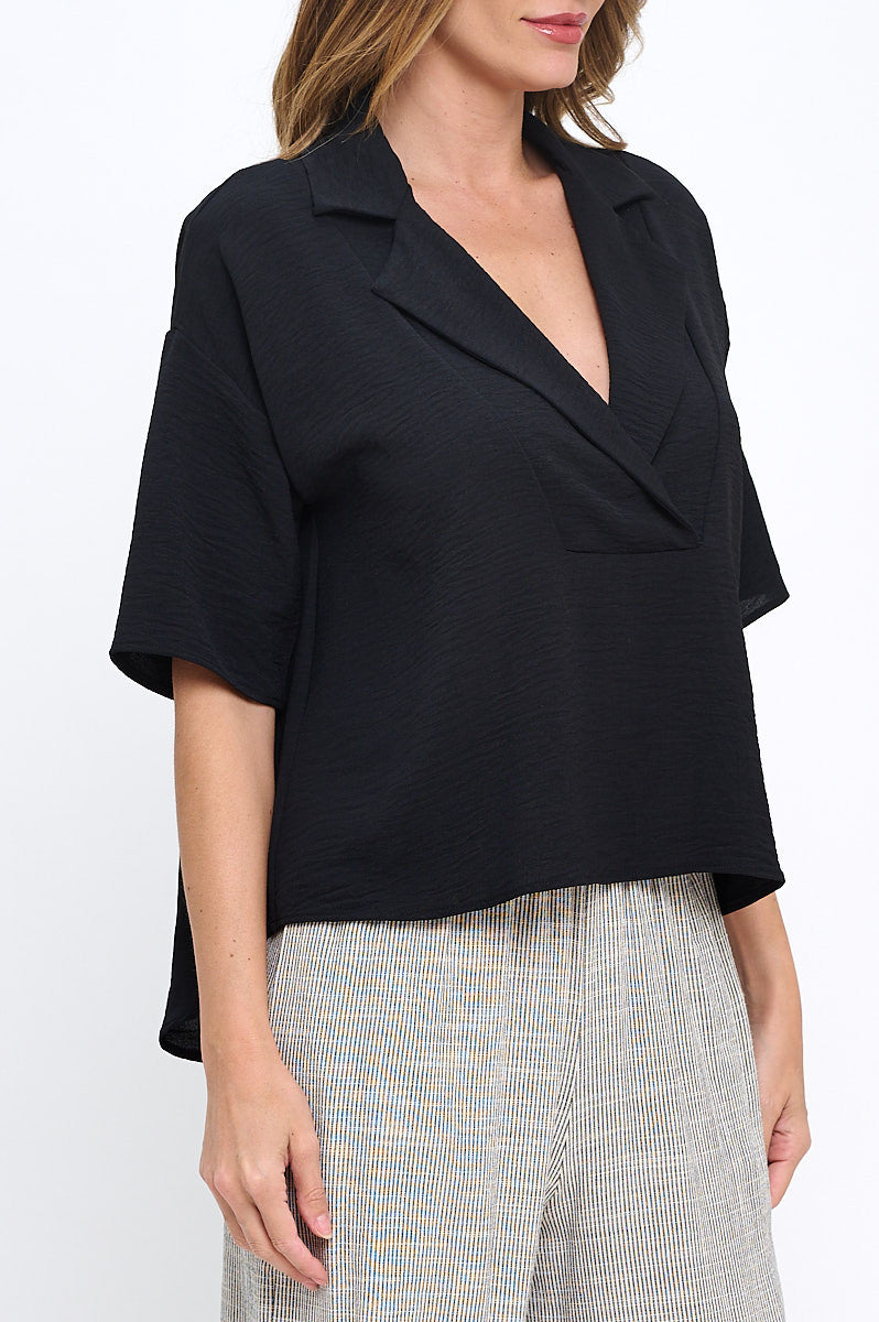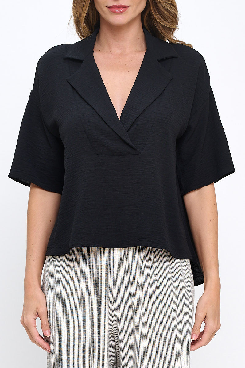 Solid Relaxed Oversize Fit V neck Top with Collar-New Arrival-Reneecollection-Small-BLACK-Urbanheer