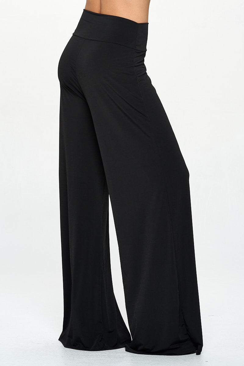 Made in USA Solid Wide Leg Pants with Thick Waistband.