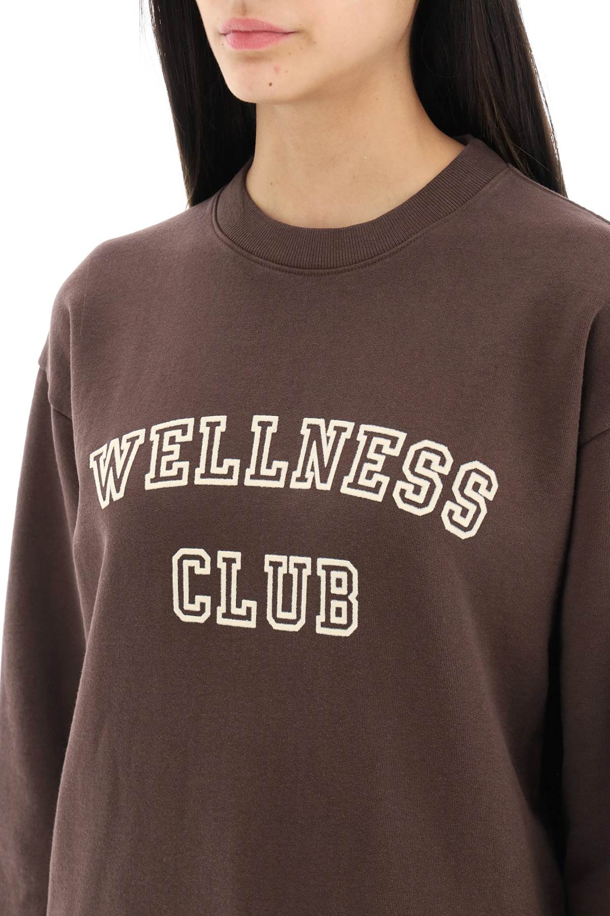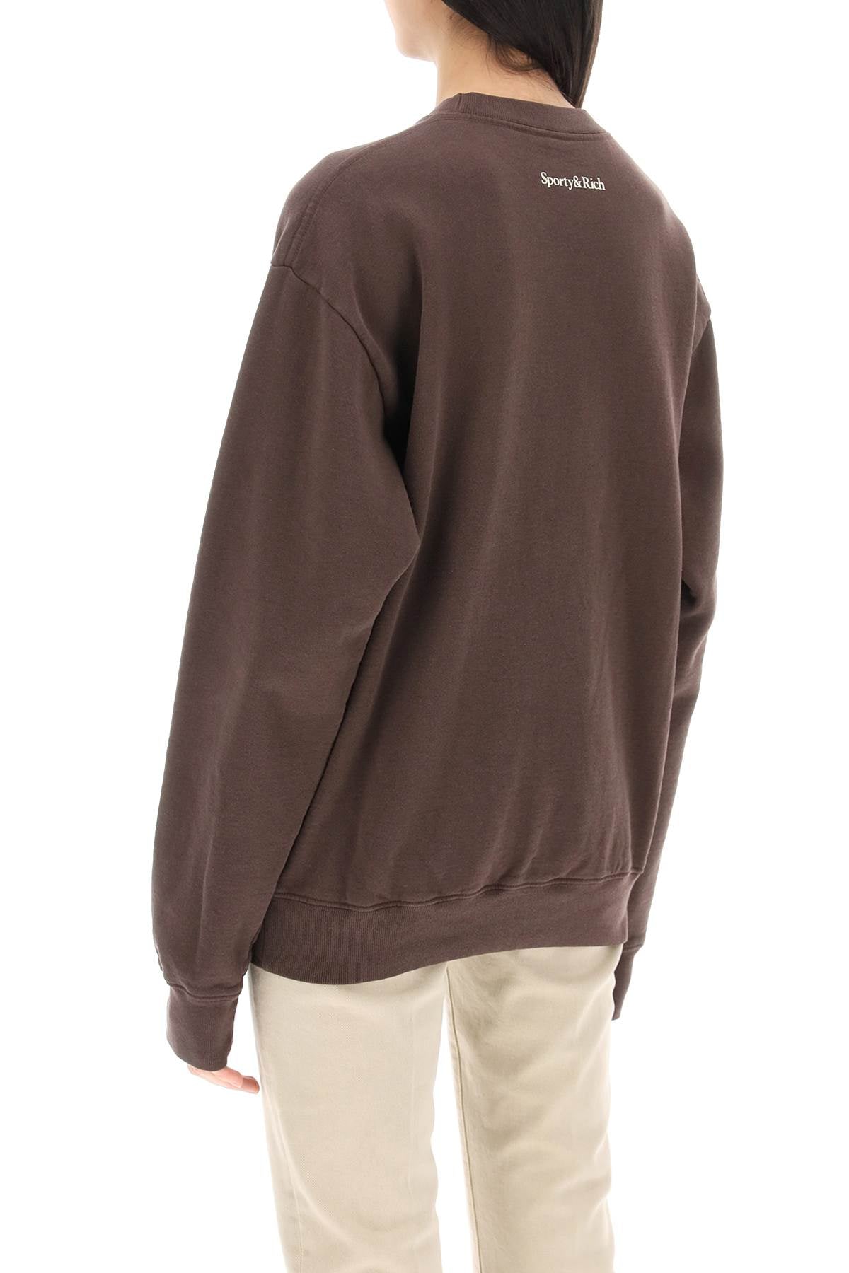 Crew-neck sweatshirt by Sporty & Rich made of brushed-back cotton jersey featuring ribbed hems and flocked lettering print on the chest. Loose fit. The model is 177 cm tall and wears a size XS.